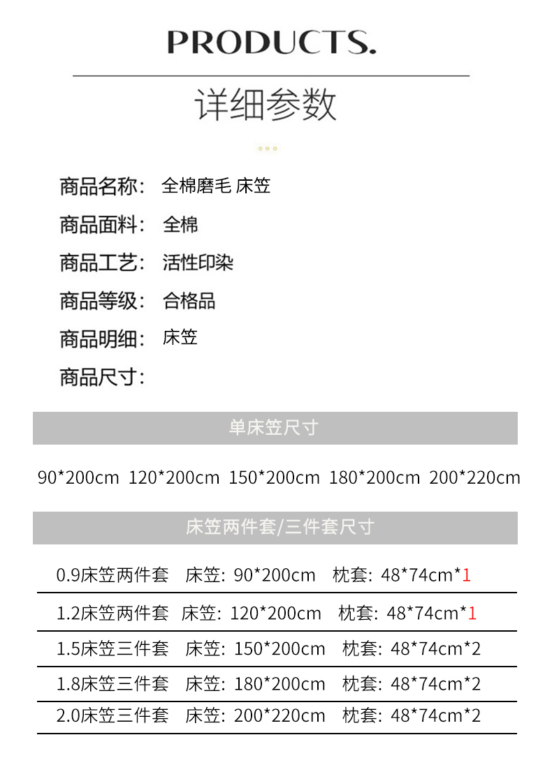 180x200cm单床笠+枕套一对