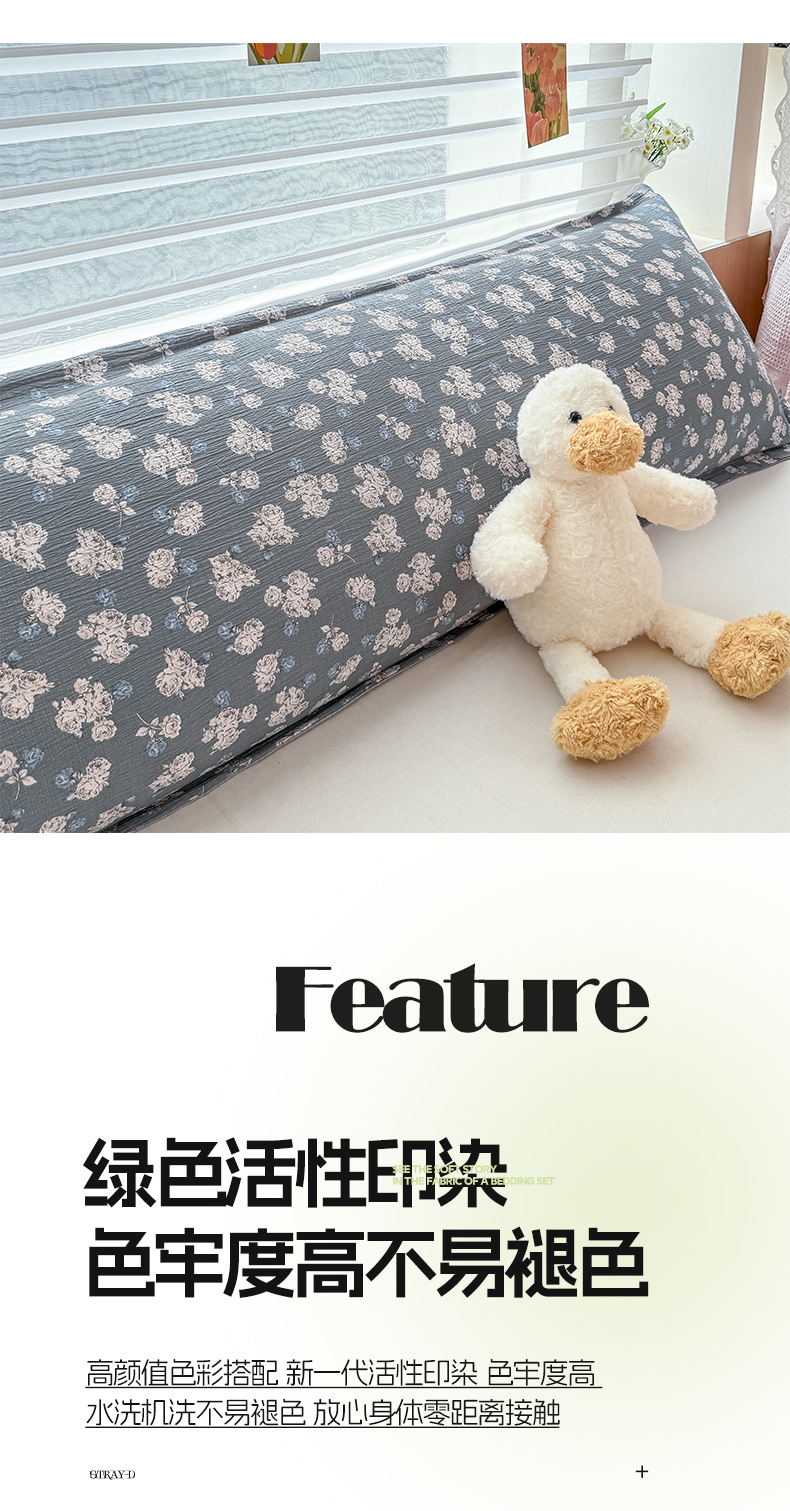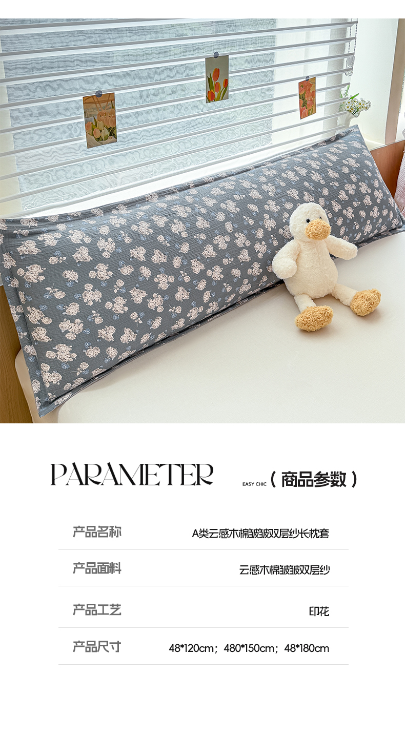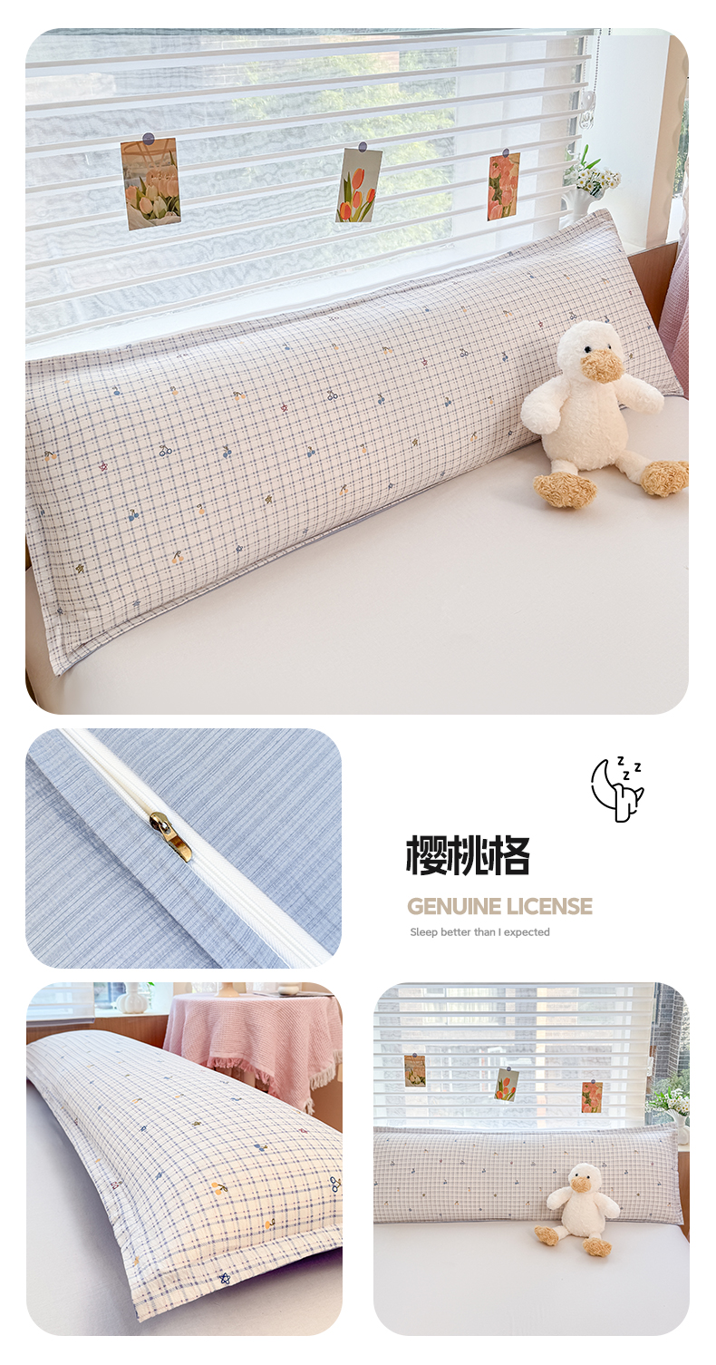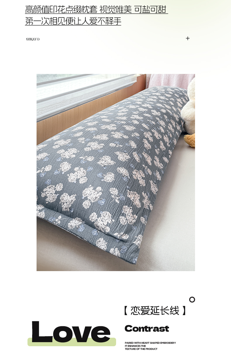 (总)麦田家纺 2025新款云感木棉皱皱双层纱长枕,春意浓,繁花,花颜,开心小熊,腊肠犬,浪漫花语,甜心格,小蓝町,樱桃格,紫韵,纯白
