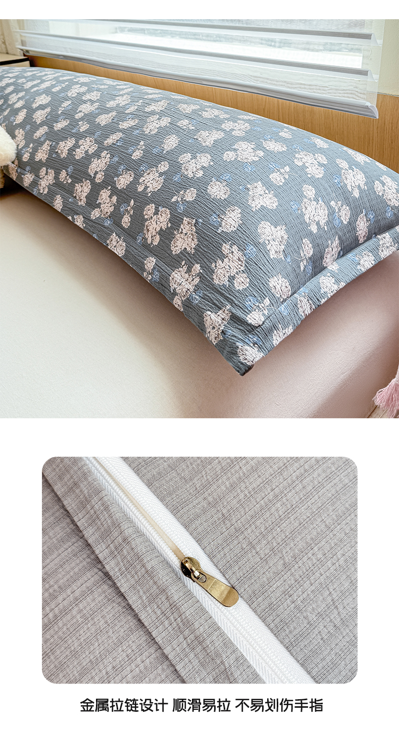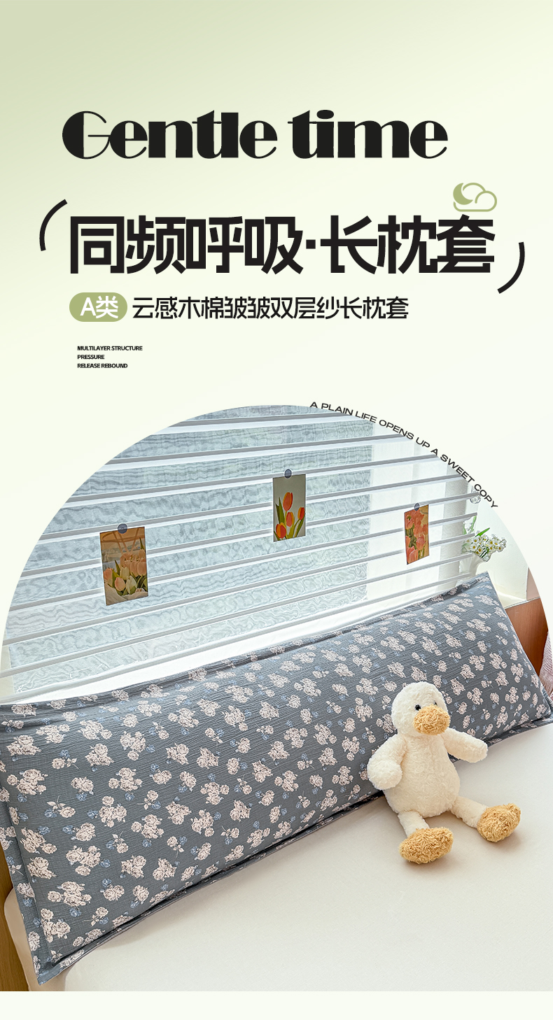 商品名称:麦田家纺 2025新款云感木棉皱皱双层纱长枕 小蓝町