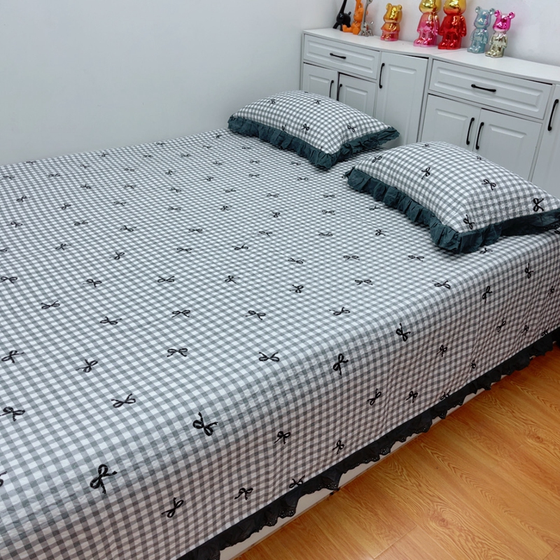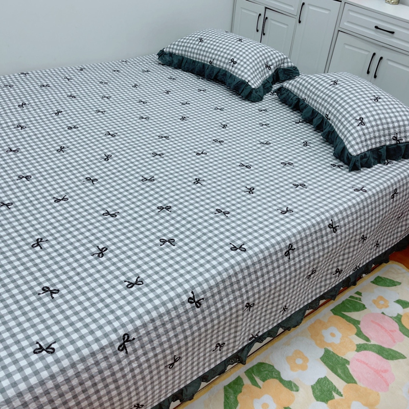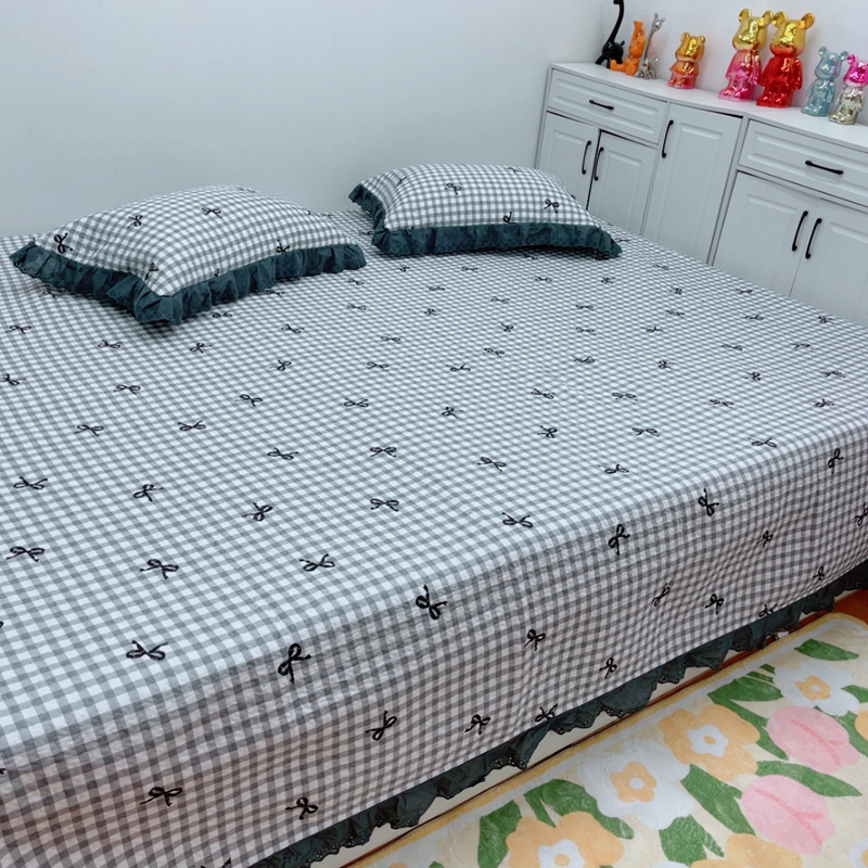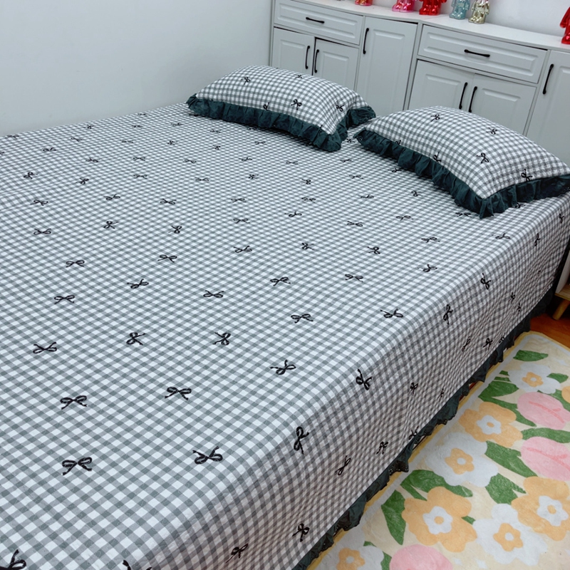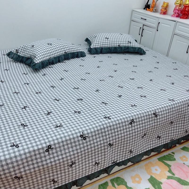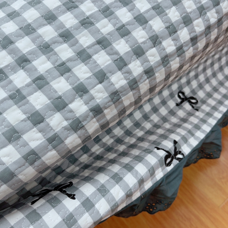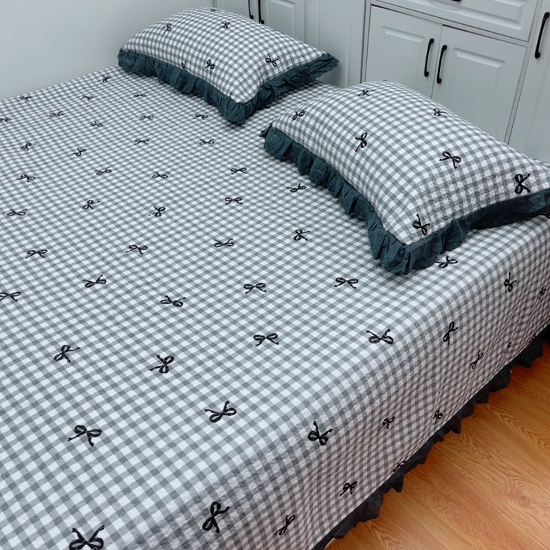 当前位置: 91家纺网 > 商品网购 > 床品套件 > 四件套 > 全棉普通四件套 > 暖居 2025新款纯棉绗缝夹棉榻榻米支持定制防滑全棉印花小碎花农村大炕盖三件套系列灰格蝴蝶结