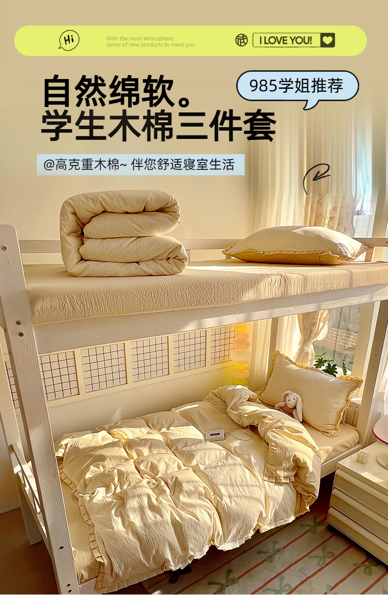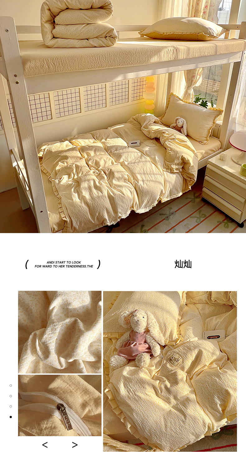 当前位置: 91家纺网 > 商品网购 > 床品套件 > 三件套 > 春光里 2025新款高克重皱皱纱学生床三件套 灿灿