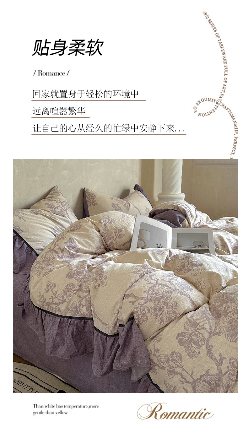 当前位置: 91家纺网 > 商品网购 > 床品套件 > 四件套 > 其它四件套 > 春光里 2025新款高克重亚麻皱皱纱四件套 纸雀