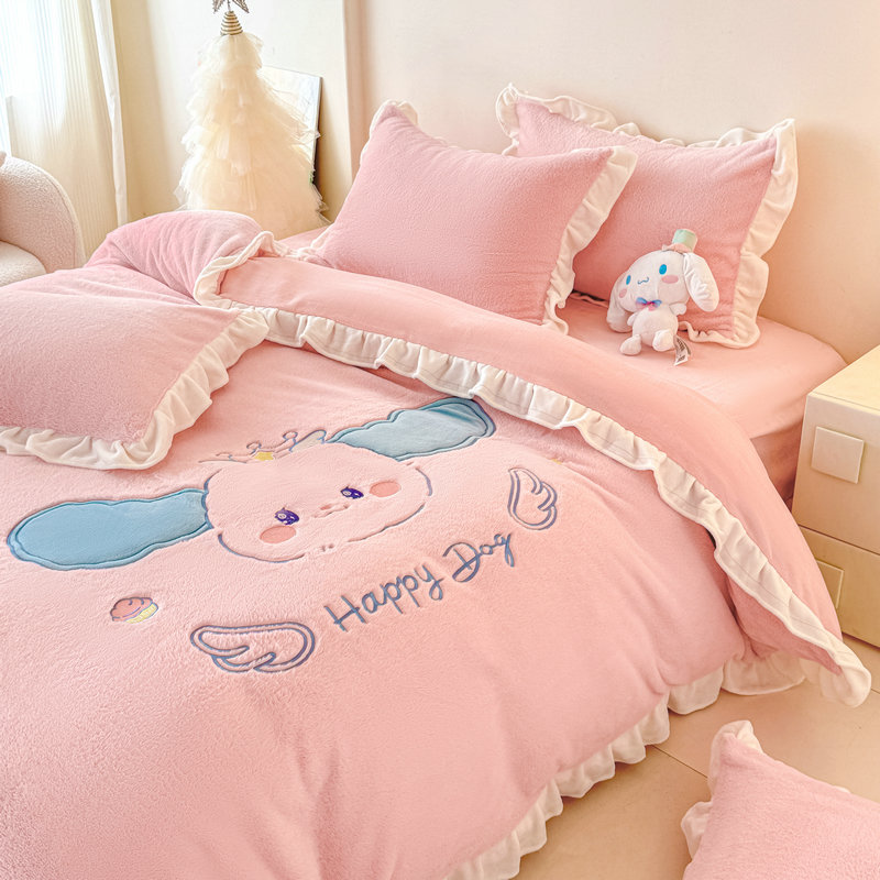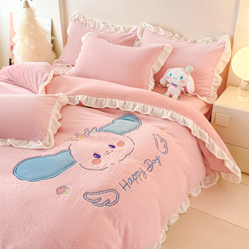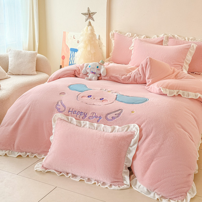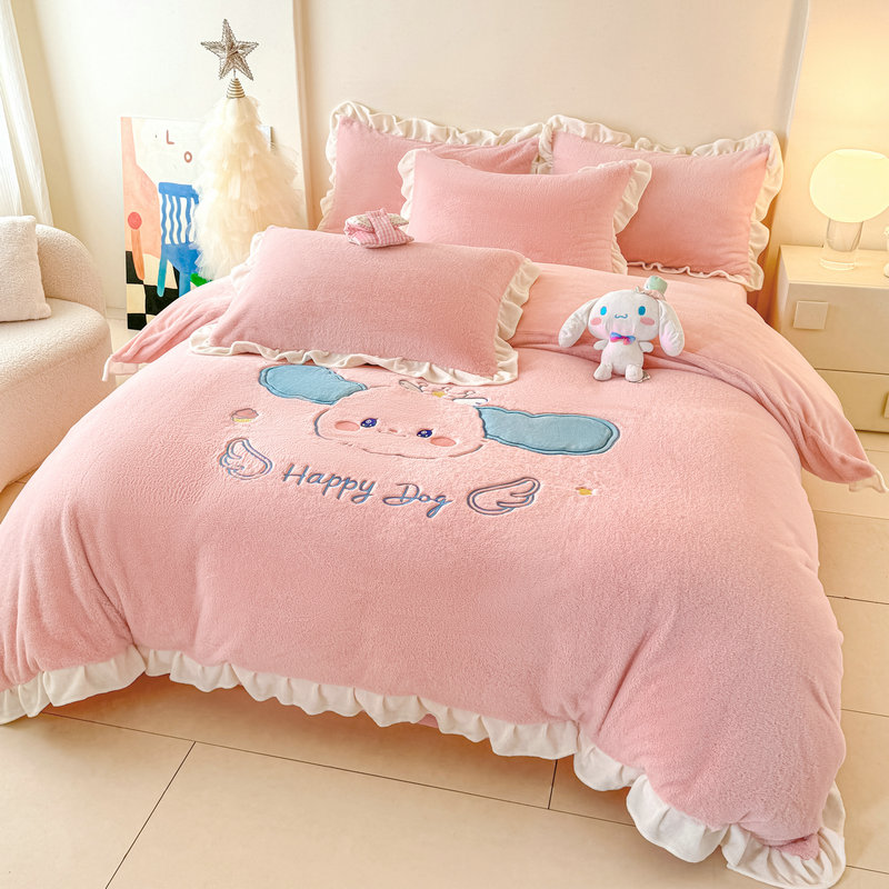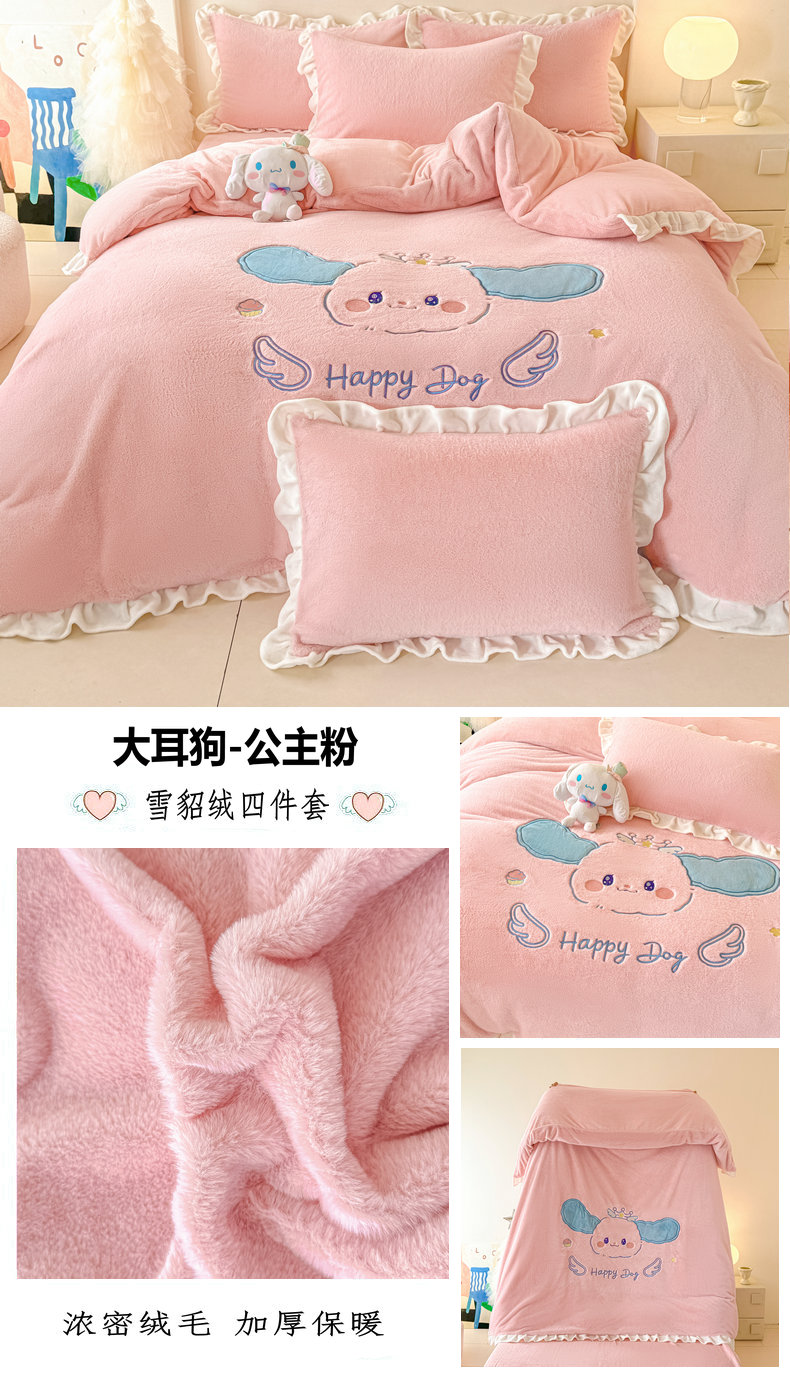 当前位置: 91家纺网 > 商品网购 > 床品套件 > 四件套 > 牛奶绒四件套 > 宝薇 2025新款高克重绒兔兔雪貂绒贴布绣四件套 大耳狗-公主粉