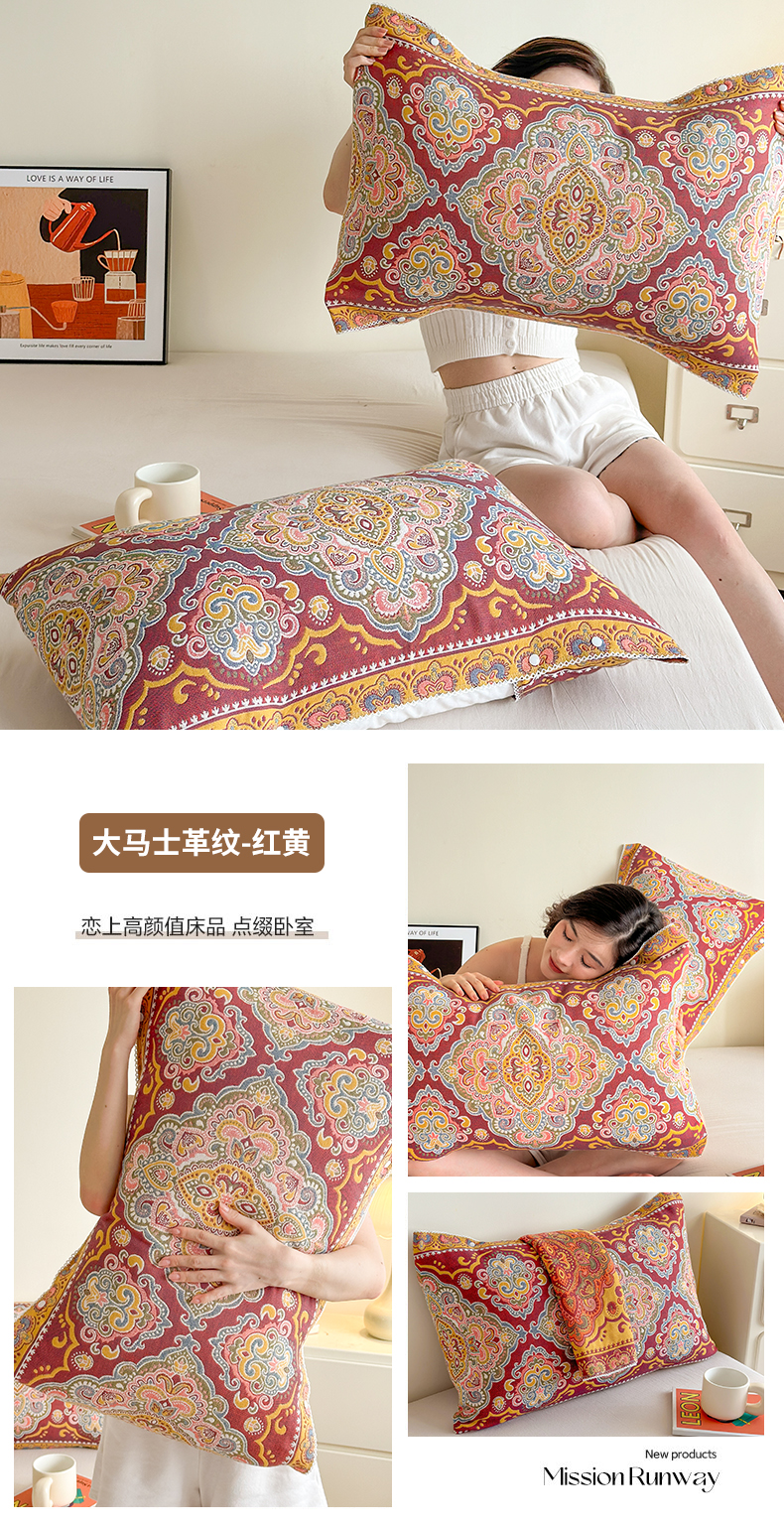 (总)朴尔家纺-毛巾被2025新款半包可调节暗扣魔术全棉三层纱布枕巾,大马士革纹-红黄,大马士革纹-蓝黄,多彩小象-蓝黄,多彩小象-绿黄,多彩小象-米白,繁花曼舞,连枝花卉,玛雅岩纹-白棕,玛雅岩纹-蓝白,欧式卷草纹,朴素树叶,一簇鲜花