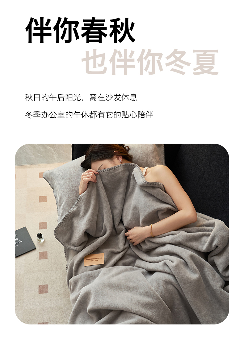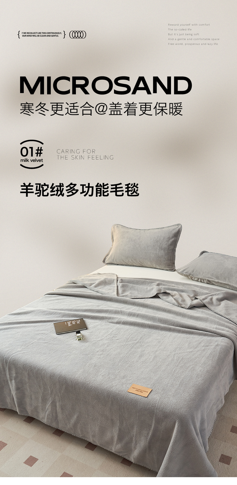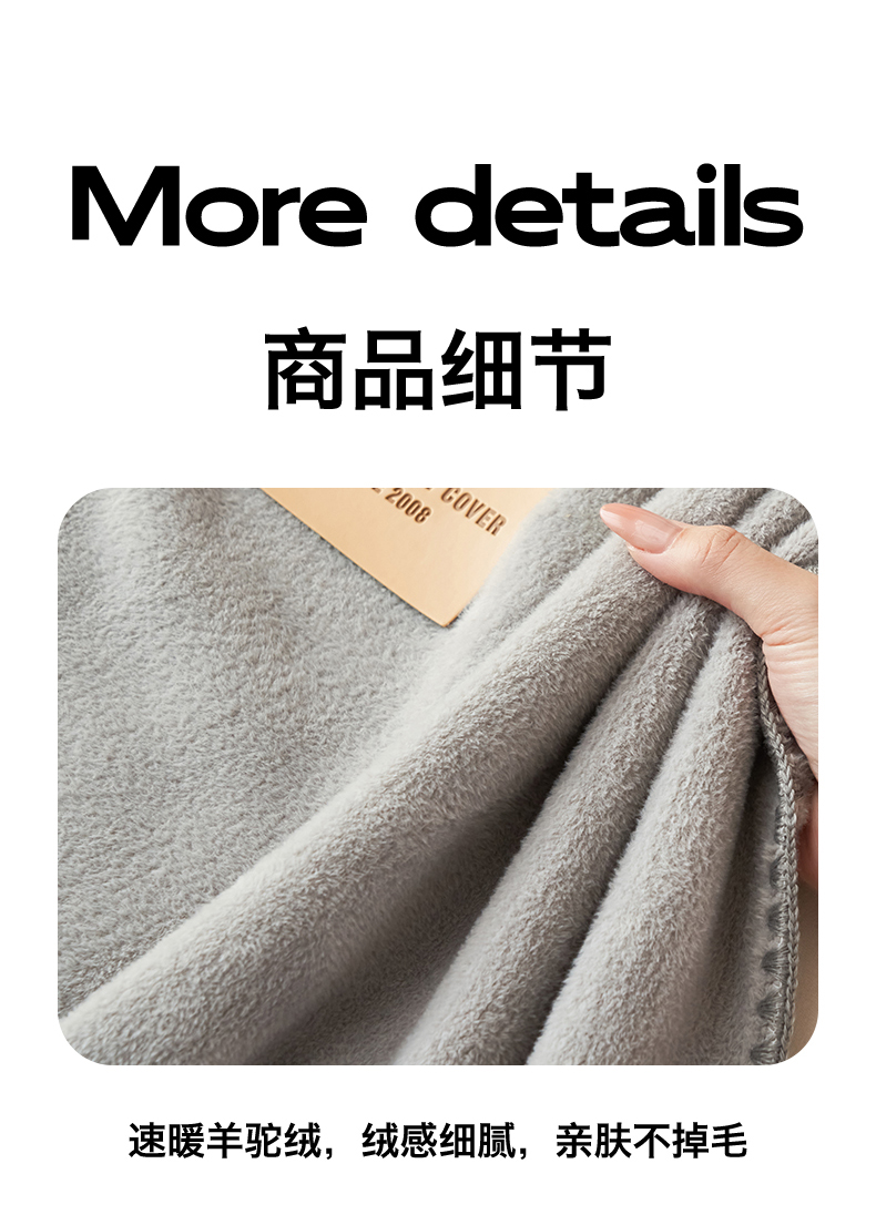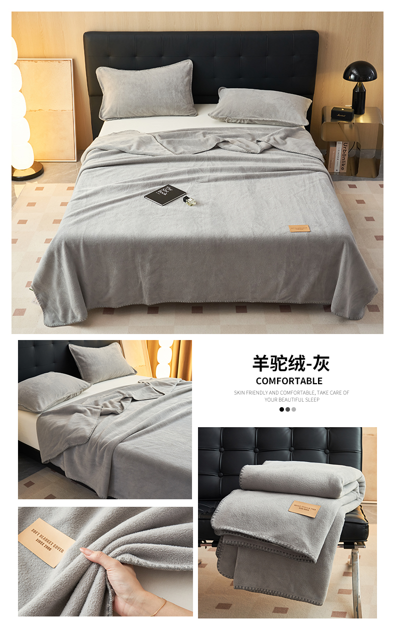 商品名称:莱家富 2026新款四季毯羊驼绒三角针边毛毯午睡沙发盖毯空调毯加厚500克双层毯 羊驼绒-灰