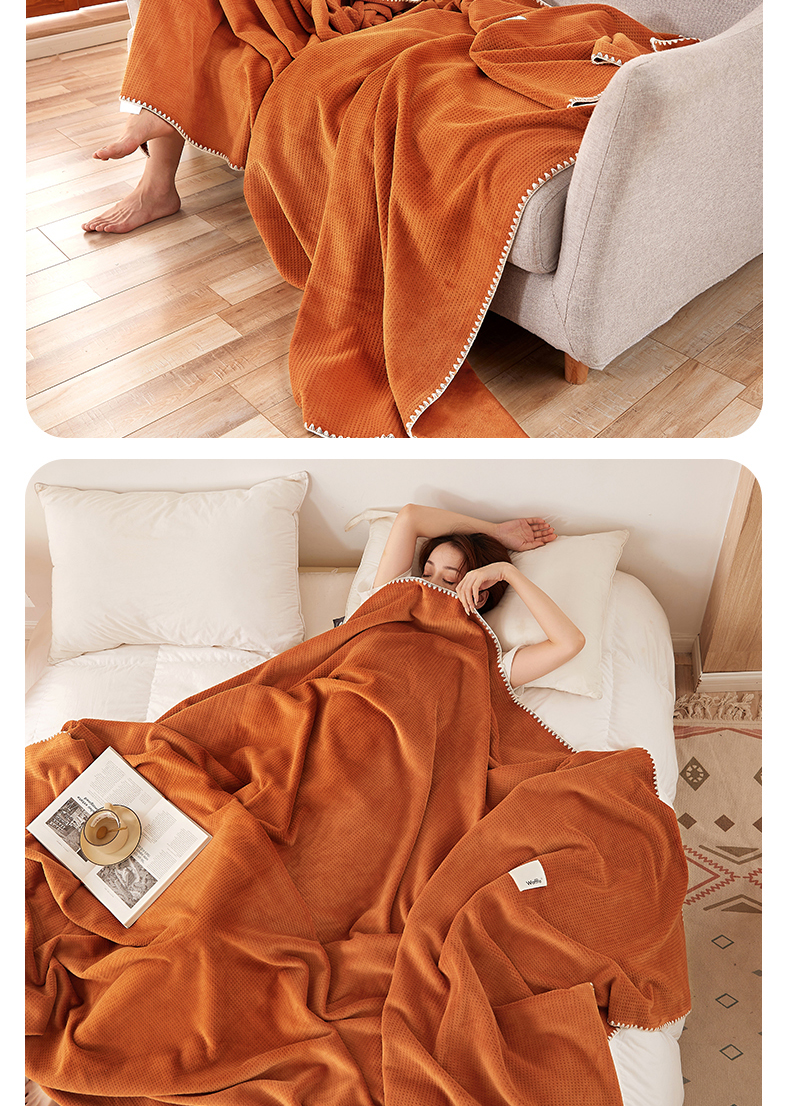 (总)莱家富 2026新款500克加厚A类华夫格牛奶绒双面毛毯轻奢休闲盖毯子多尺寸多功能午睡办,组合图仅做展示,都市灰,湖蓝,焦糖,明黄,奶白,嫩粉,苹果绿