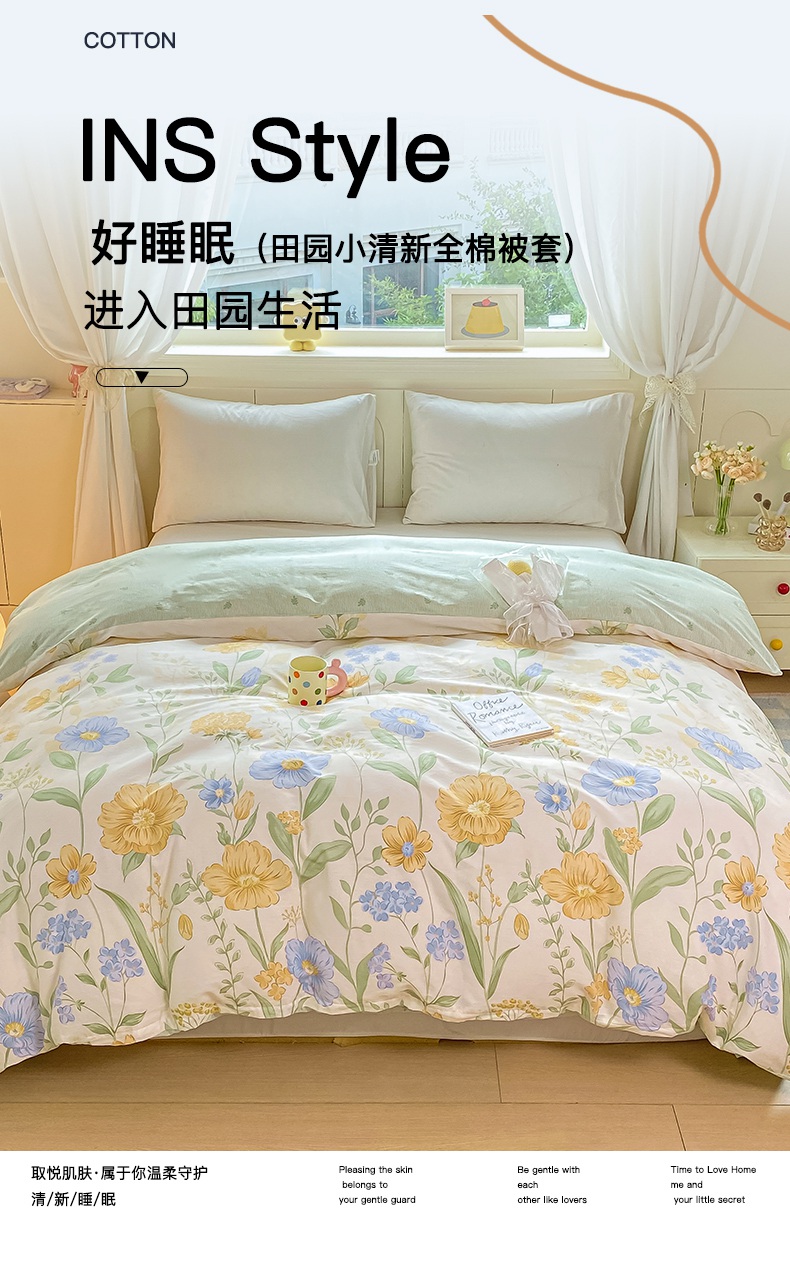 商品名称:黑马家居 2025新款13070全棉田园小清新单品被套系列 花漾
