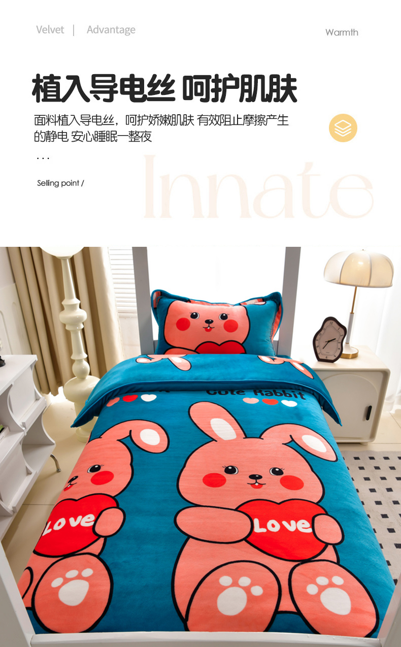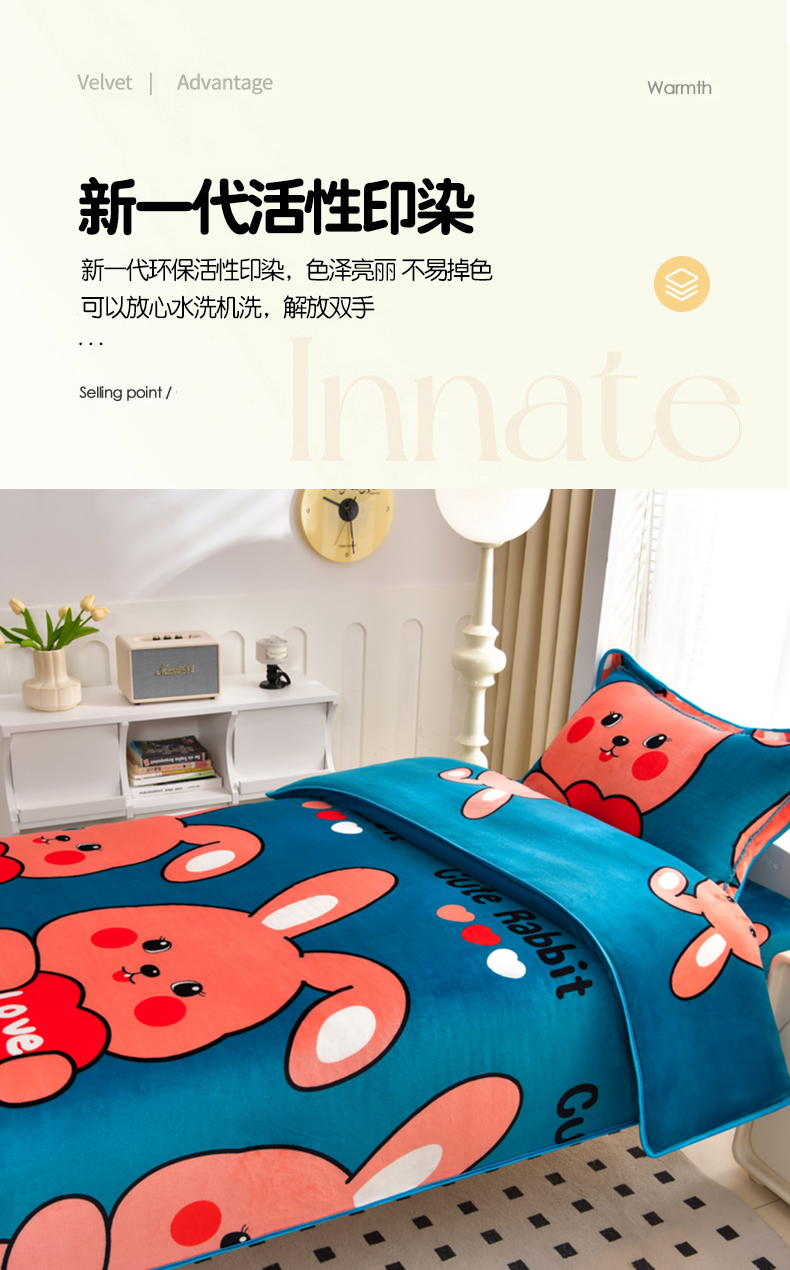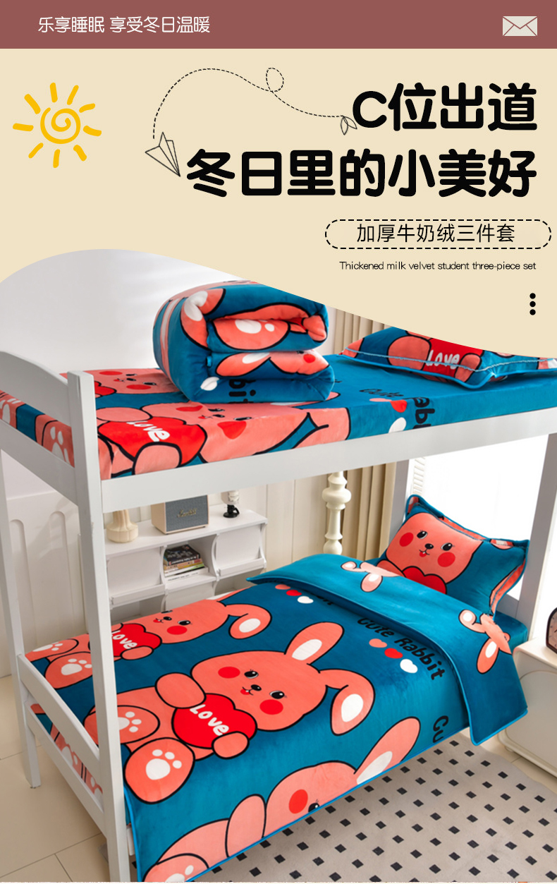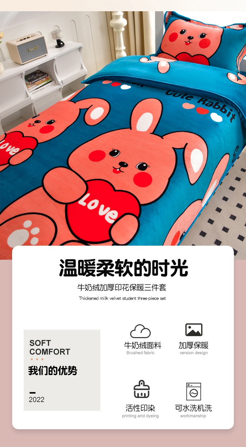 芯诗曼家纺 2025新款金貂绒牛奶绒印花三件套 可爱兔