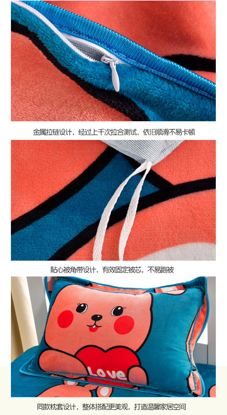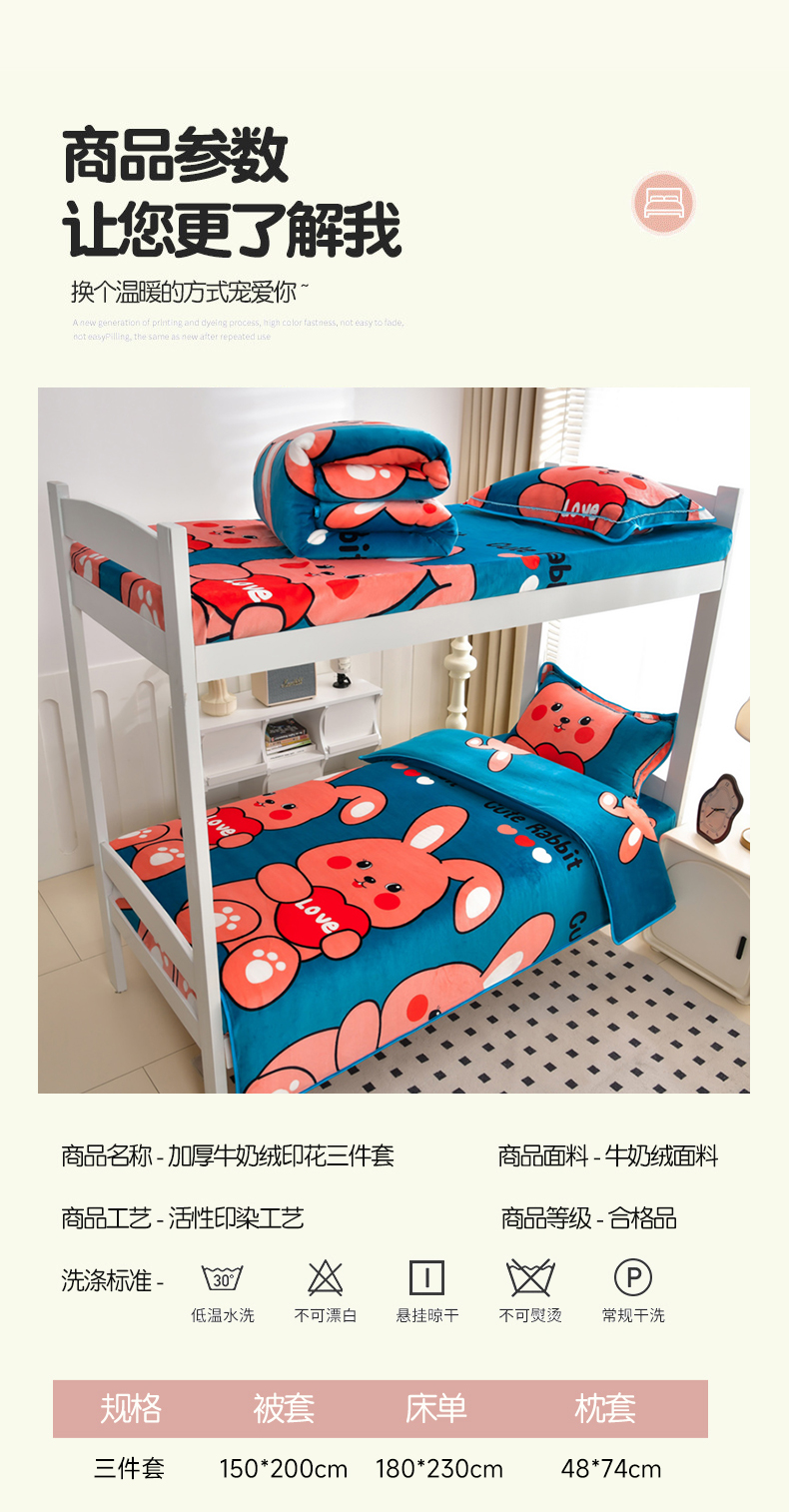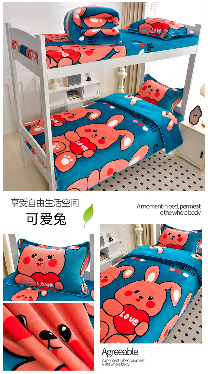 商品名称:芯诗曼家纺 2025新款金貂绒牛奶绒印花三件套 可爱兔