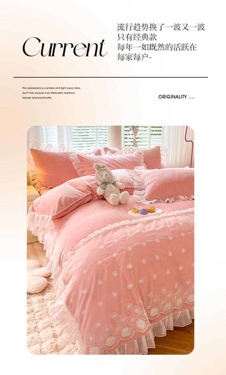 商品名称:(总)唐人居 2025新款法式蕾丝花边宝宝绒四件套--安妮系列