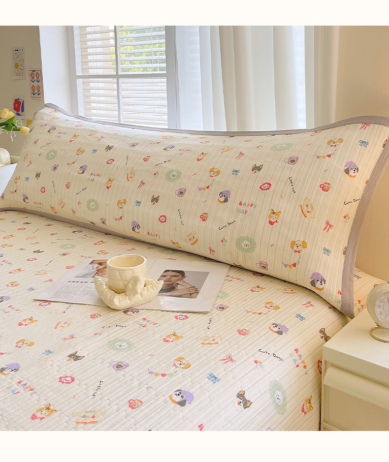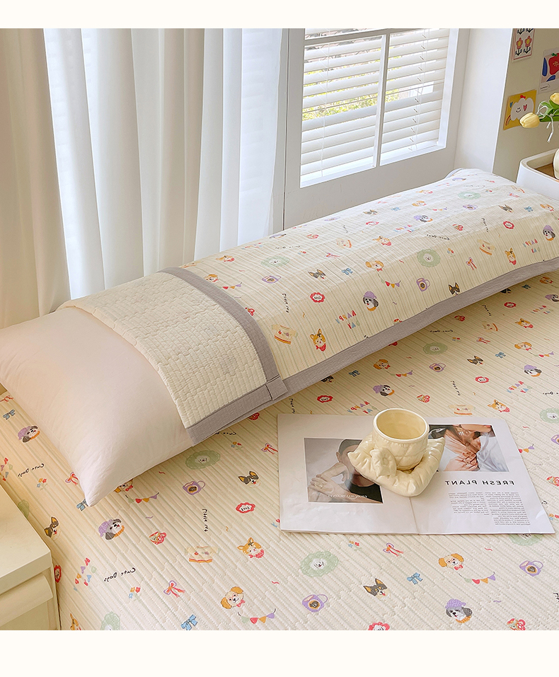 雨彤家纺 2025新款A类双层纱夹棉双人枕巾 童趣涂鸦