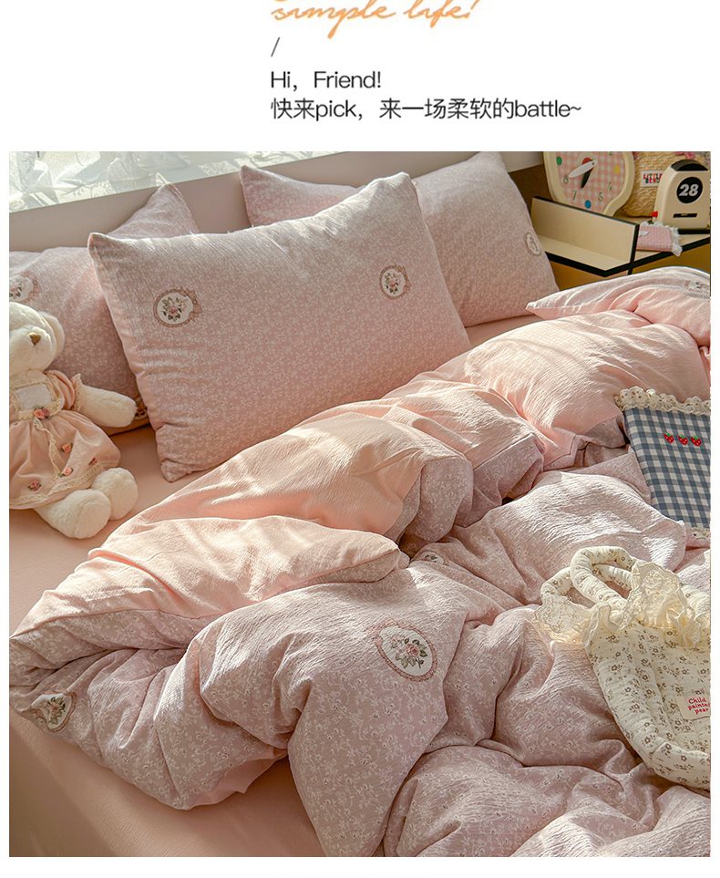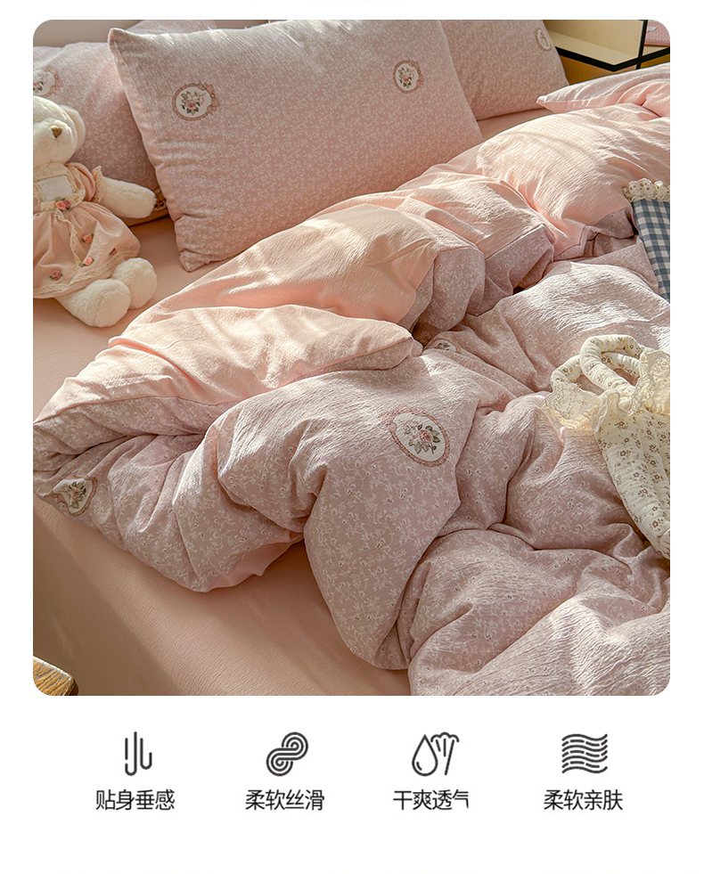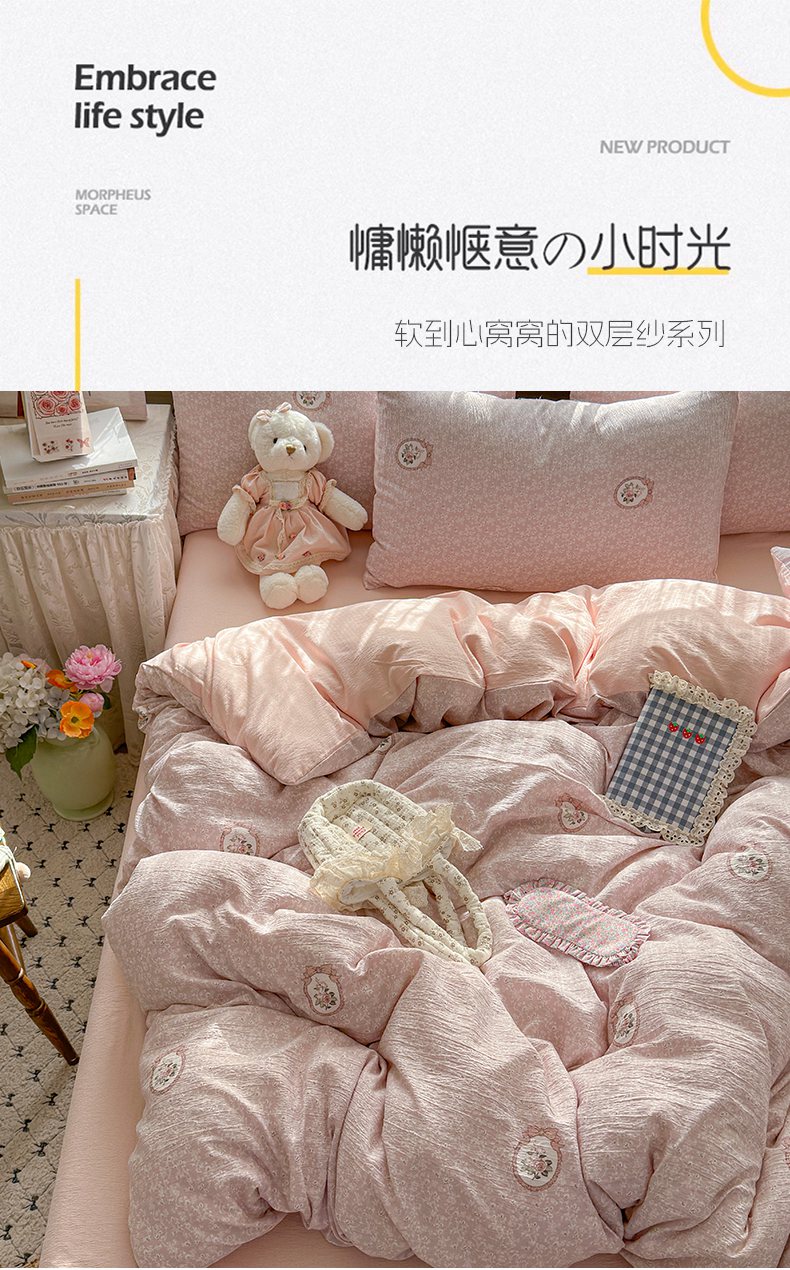 当前位置: 91家纺网 > 商品网购 > 床品套件 > 四件套 > 双层纱四件套 > 丽美人家纺 2025新款【全尺寸不断货】高克重木棉提花双层纱四件套 QB赫本-粉