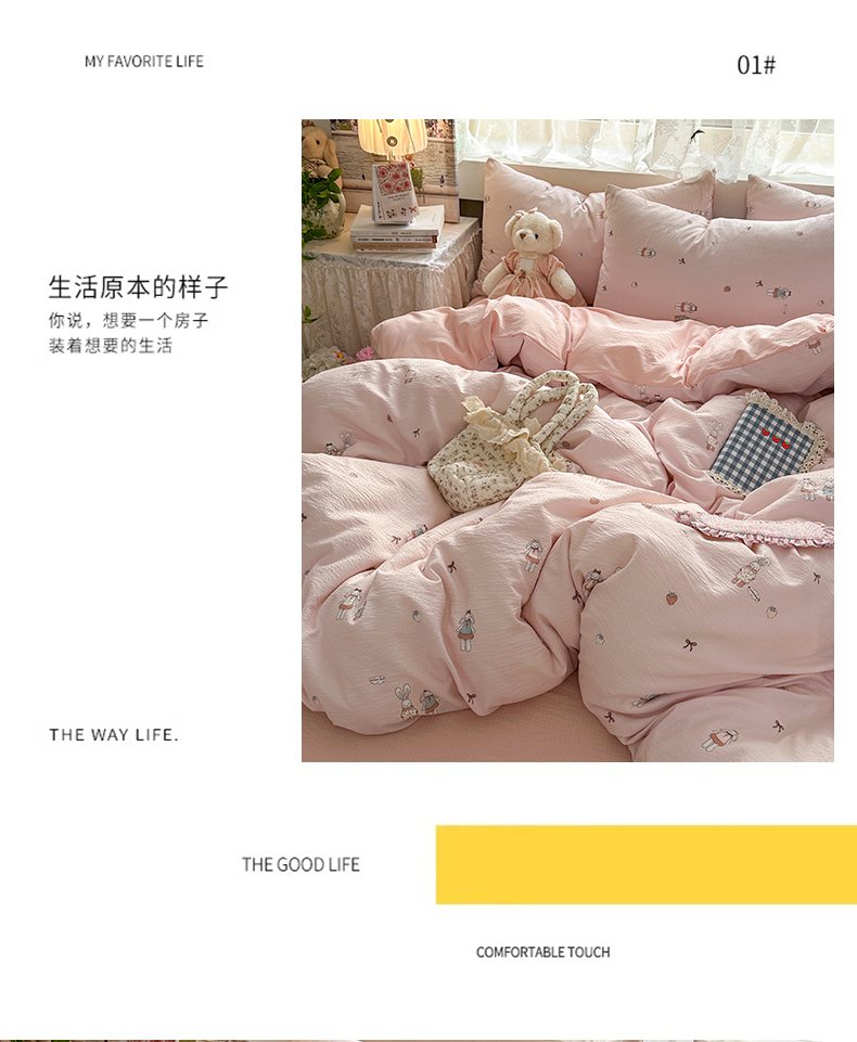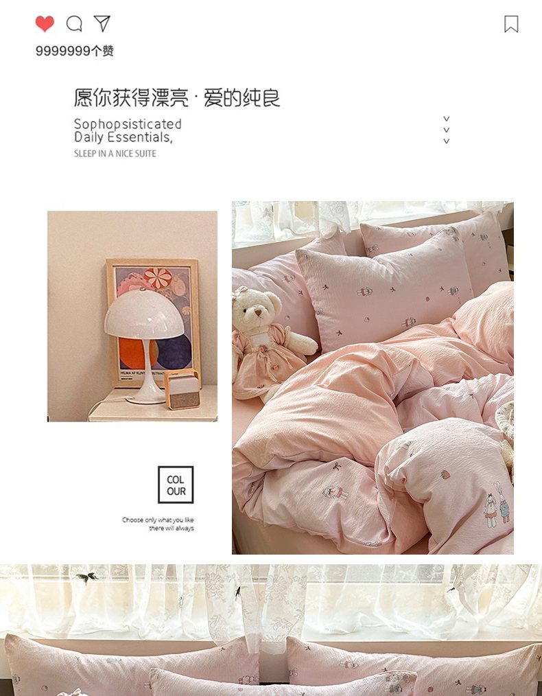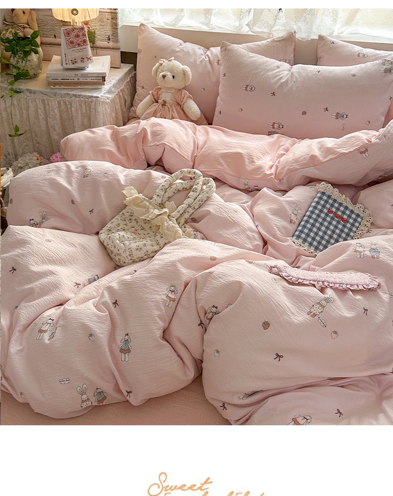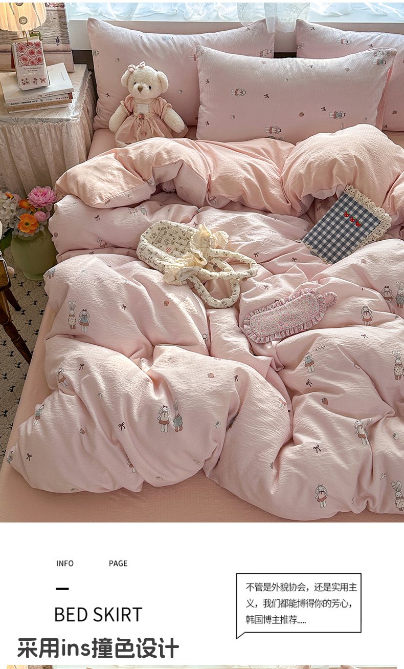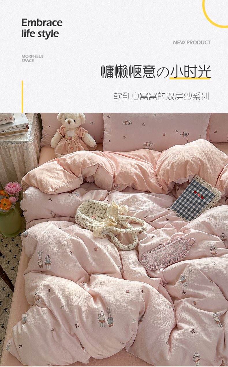 当前位置: 91家纺网 > 商品网购 > 床品套件 > 四件套 > 双层纱四件套 > 丽美人家纺 2025新款【全尺寸不断货】高克重木棉提花双层纱四件套 QB兔小姐