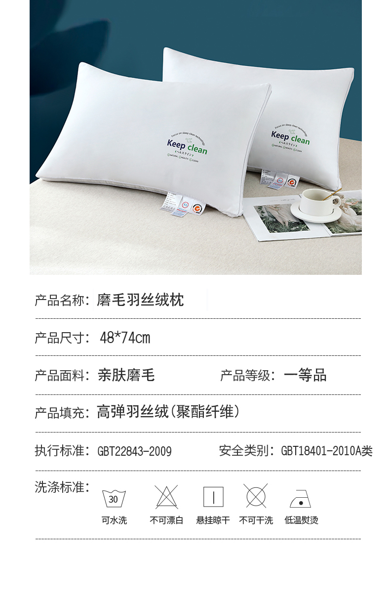商品名称:永乐枕芯 2025新款keep磨毛羽丝绒枕枕头枕芯 白色单边