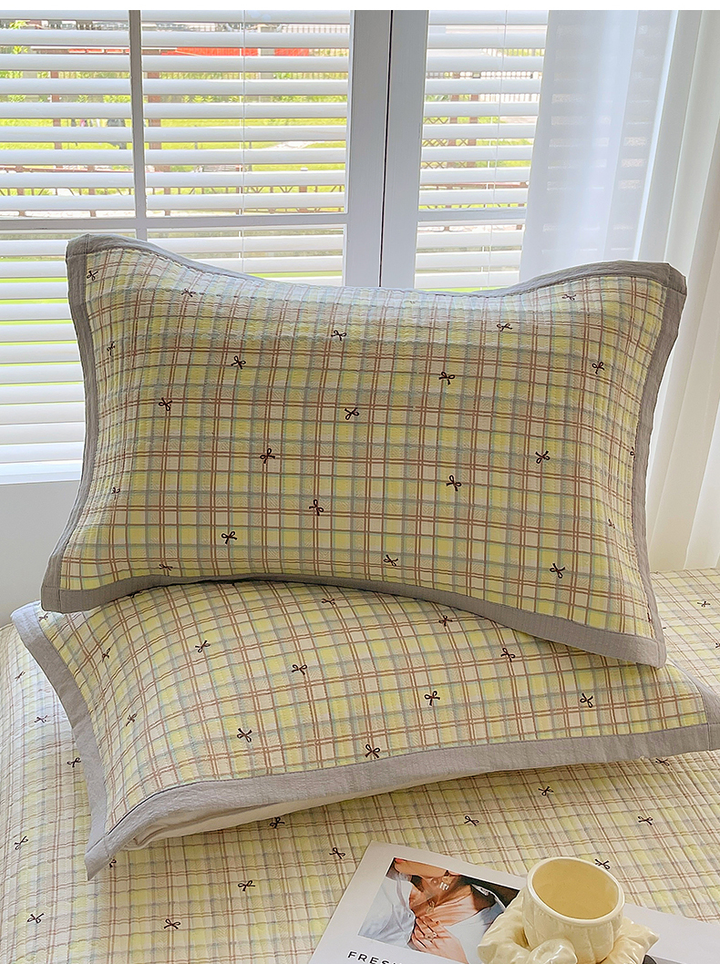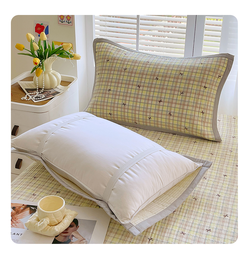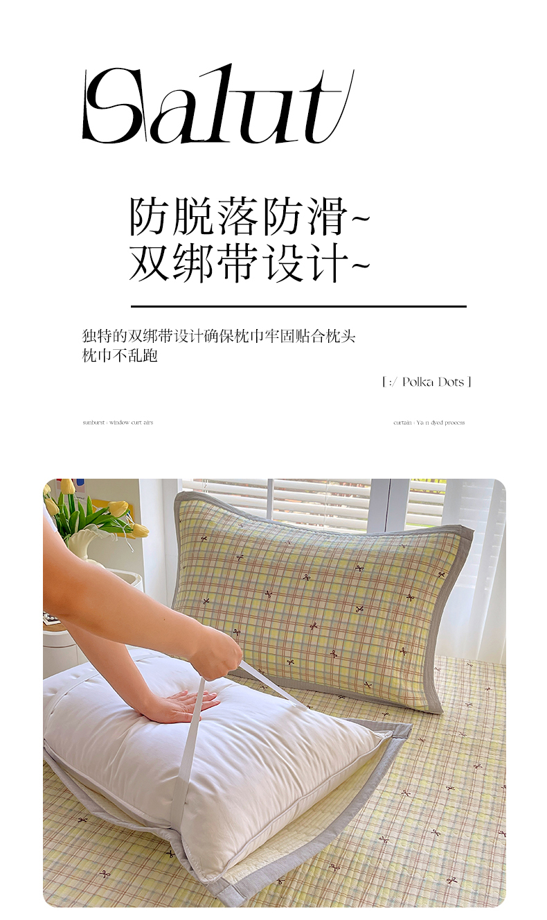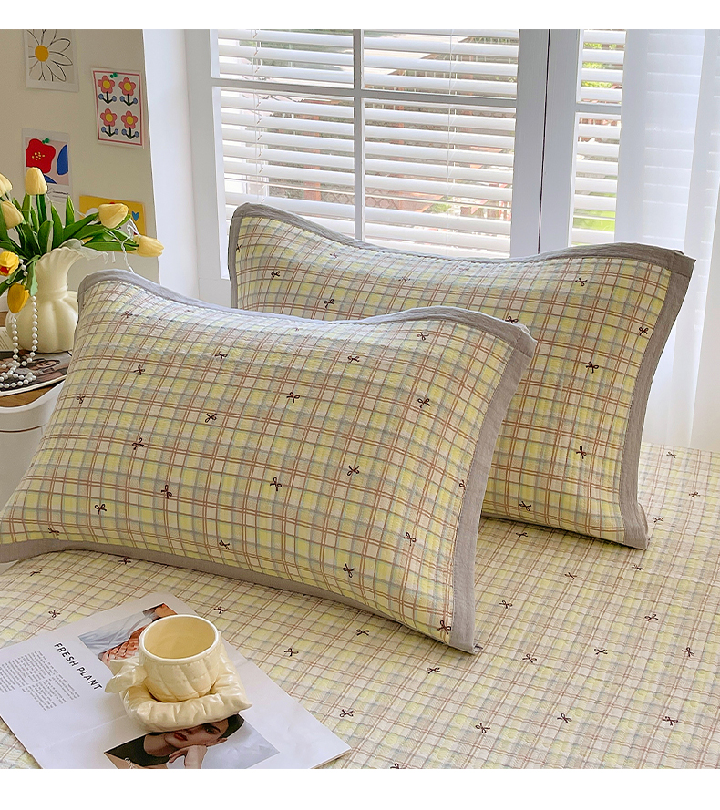 商品名称:雨彤家纺 2025新款A类双层纱夹棉单人枕巾 格调蝴蝶结