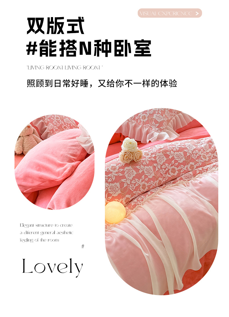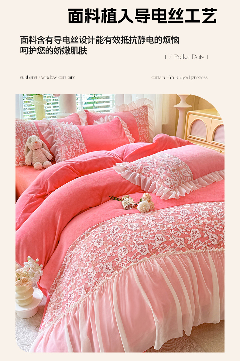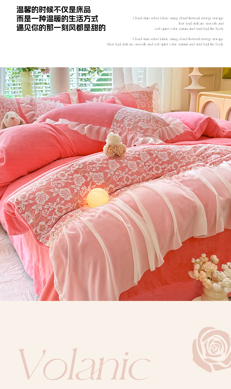 商品名称:(总)唐人居 2025新款高克重牛奶绒蕾丝雪纺花边四件套-丘比特