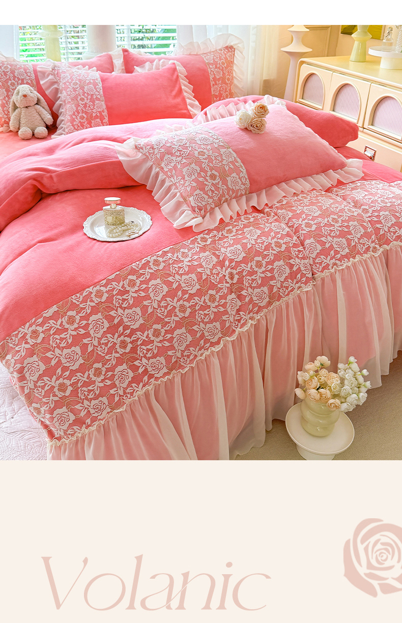 (总)唐人居 2025新款高克重牛奶绒蕾丝雪纺花边四件套-丘比特