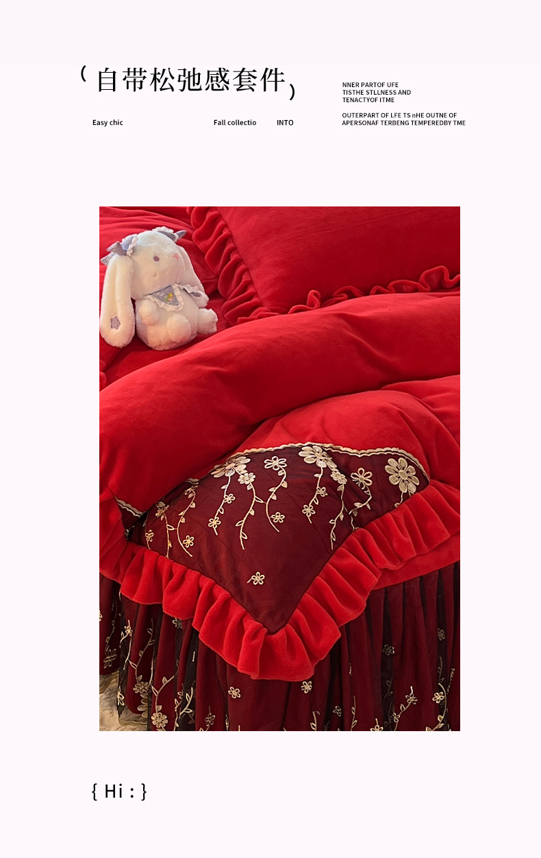 商品名称:唐人居 2025新款加厚牛奶绒床裙款四件套--花颜系列 花颜-天蓝