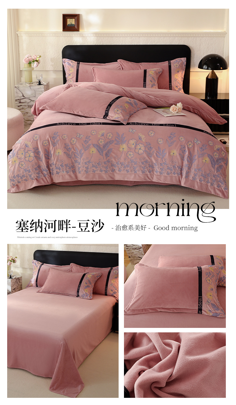 (总)唐人居 2025新款高克重牛奶绒立体绣花床盖四件套-芬芳,芬芳-浅紫,芬芳-草绿,芬芳-豆沙,芬芳-粉色,芬芳-暖橘,芬芳-浅蓝