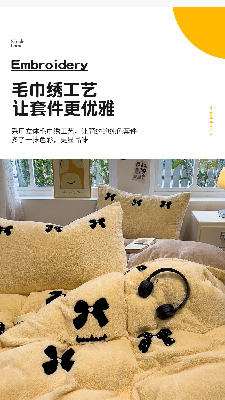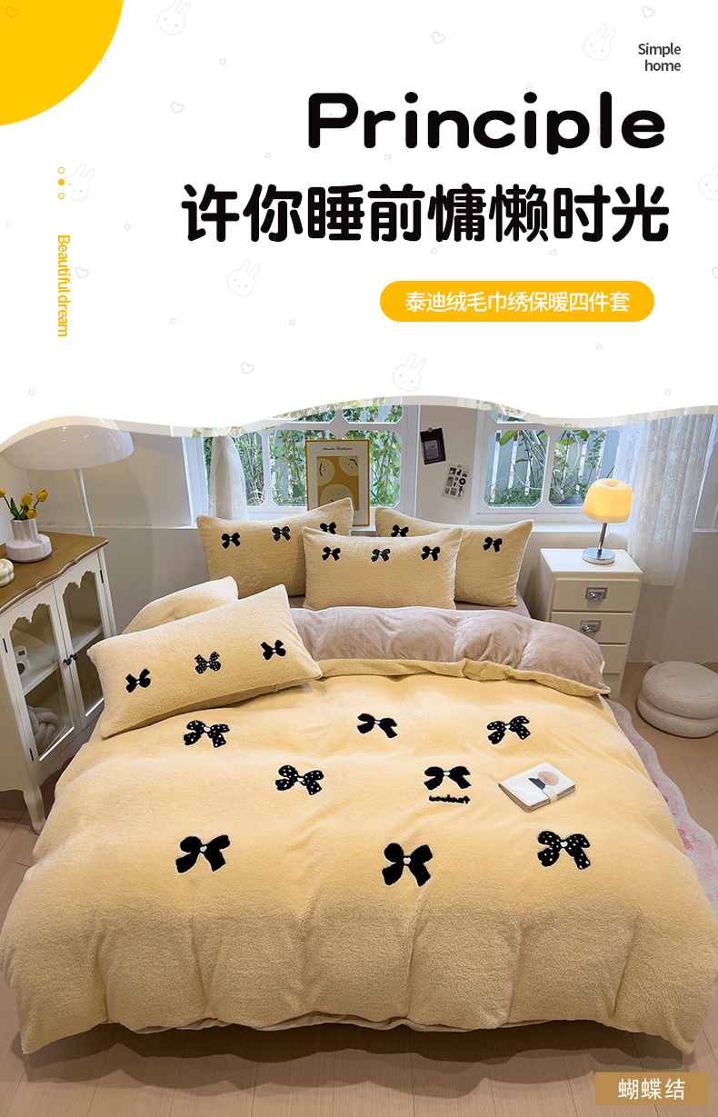 当前位置: 91家纺网 > 商品网购 > 床品套件 > 四件套 > 牛奶绒四件套 > 金爱家 2025新款泰迪绒毛巾绣四件套 泰迪绒-蝴蝶结