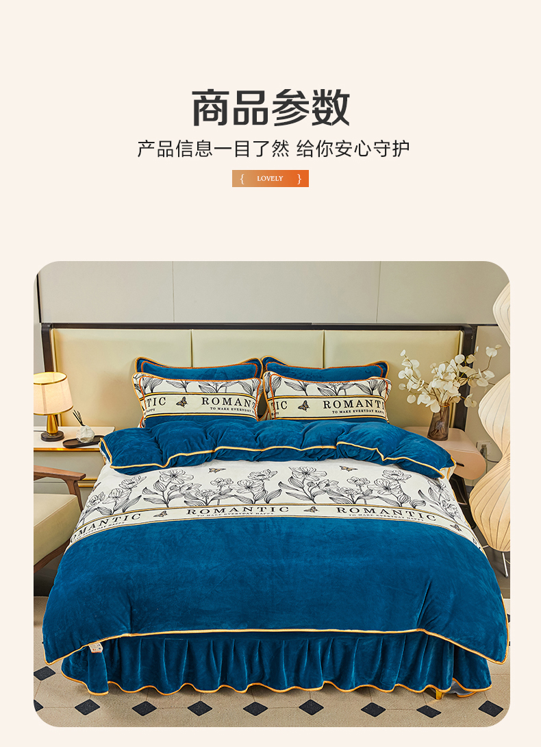 当前位置: 91家纺网 > 商品网购 > 床品套件 > 四件套 > 牛奶绒四件套 > 博兰蒂 2025新款床裙款高克重牛奶绒印花四件套 一路生花