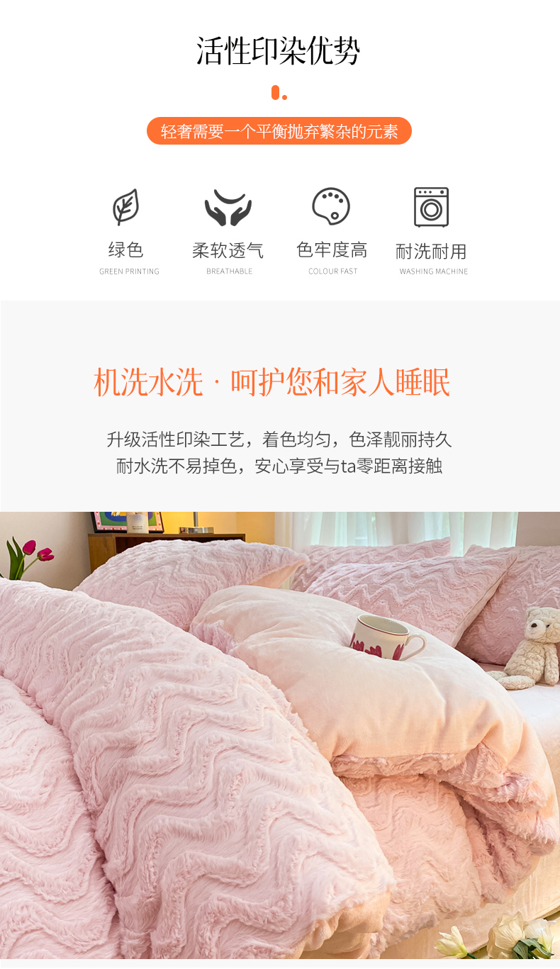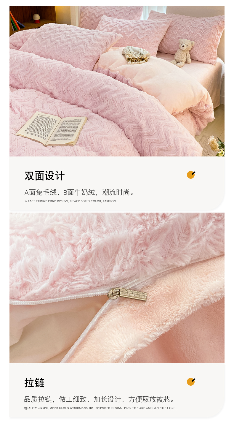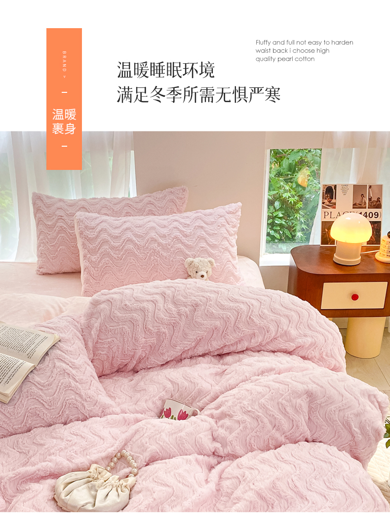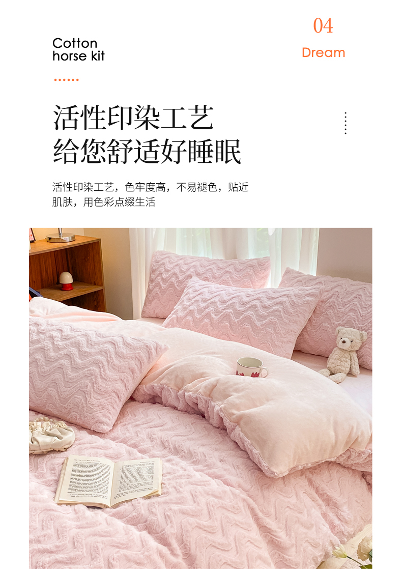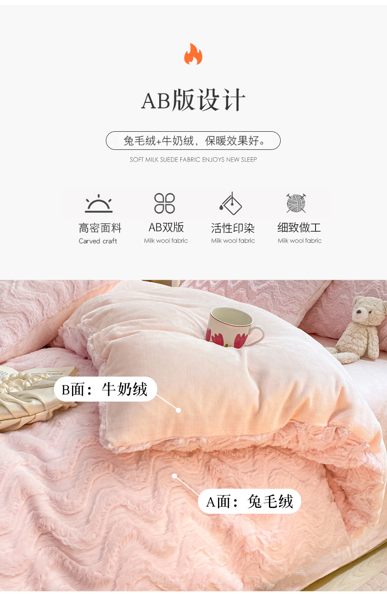 当前位置: 91家纺网 > 商品网购 > 床品套件 > 四件套 > 牛奶绒四件套 > 金爱家 2025新款全消光牛奶绒A类纯色獭兔毛绒立体牛奶绒四件套 兔毛波浪粉