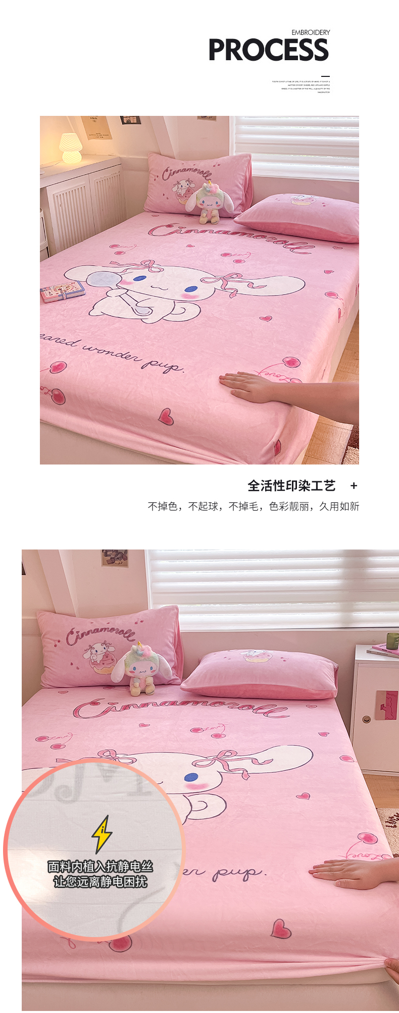 • 91家纺网 家纺一手货源 找家纺 金爱家 2025新款高克重牛奶绒单品系列保暖床单床笠单件 绒-D樱桃美美大耳狗