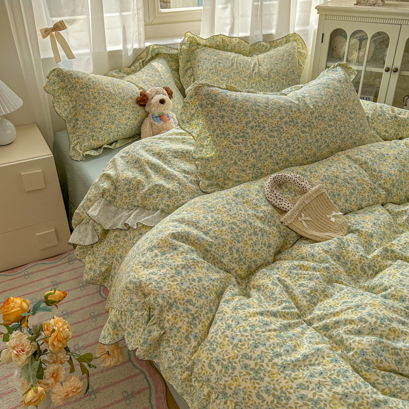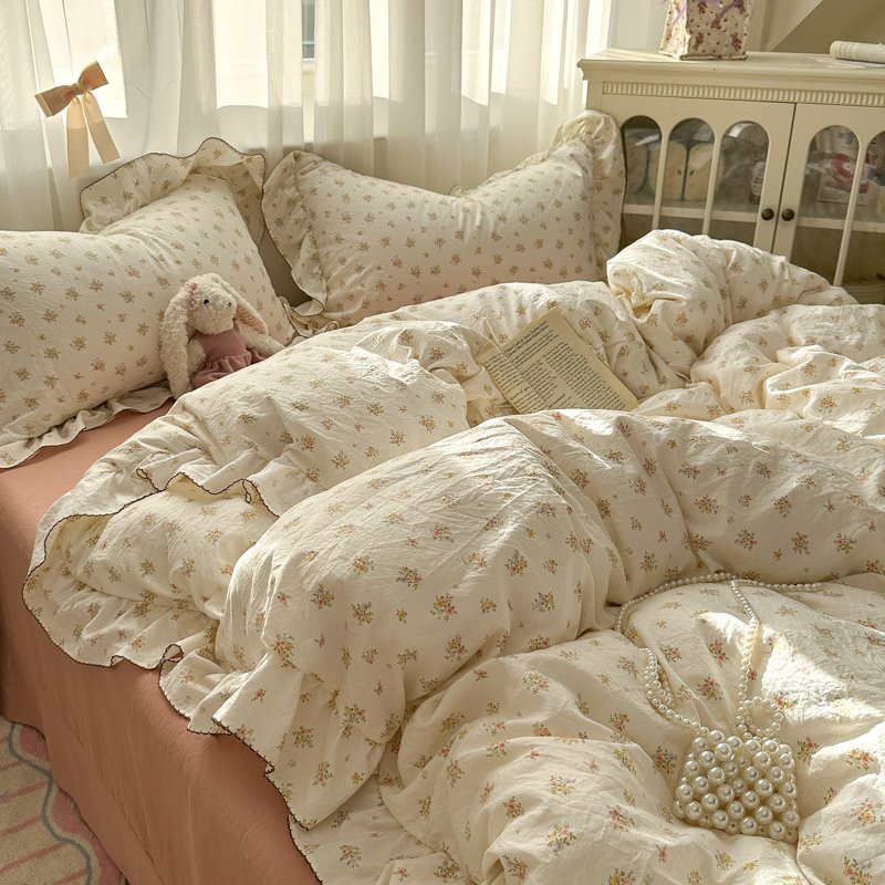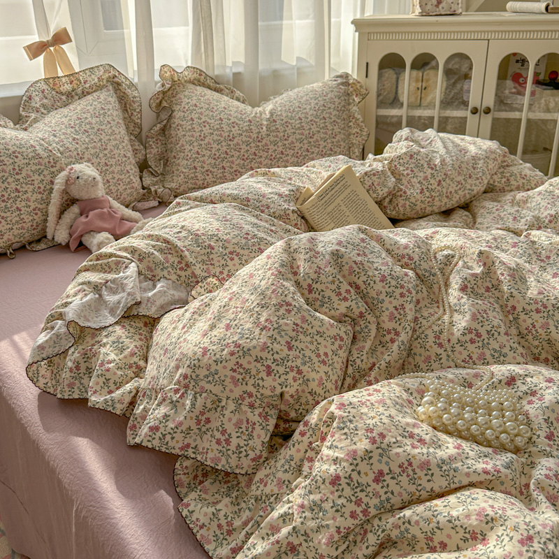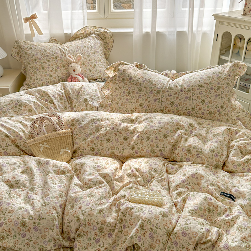 (总)欧尚 2026新款花边床盖四件套,春和,花束,花野,灰樱桃,咖爱心,咖豹纹,咖啡小猫,梨花落,绿爱心,梦境,木马,奶油波点,暖橘枝,暖心,人间草木,田园兔,小女孩,星愿,摇摇马,紫爱心,紫豹纹,紫苏