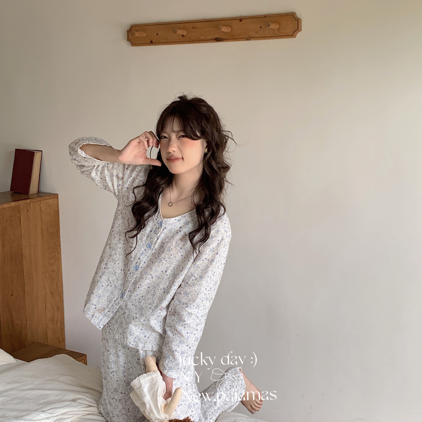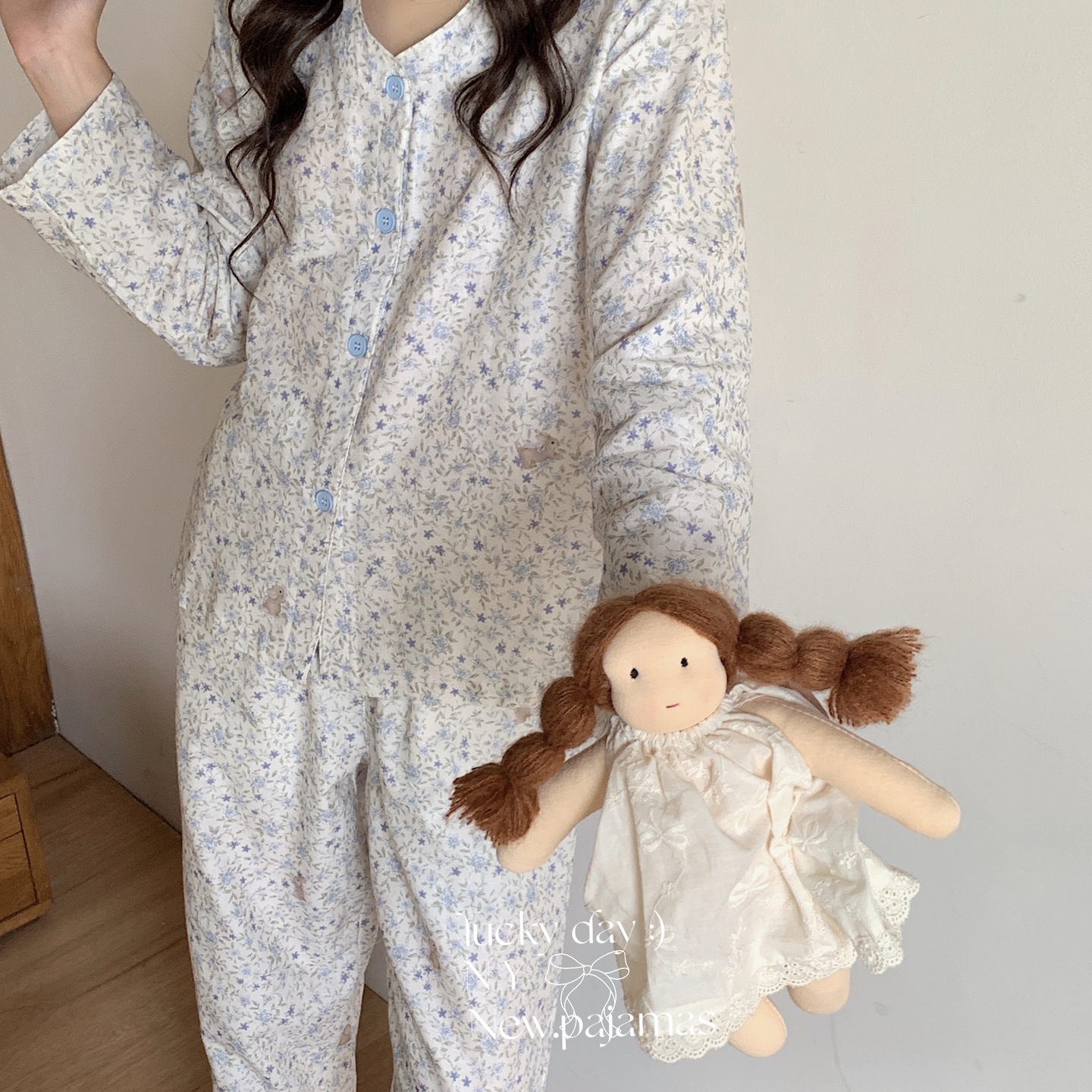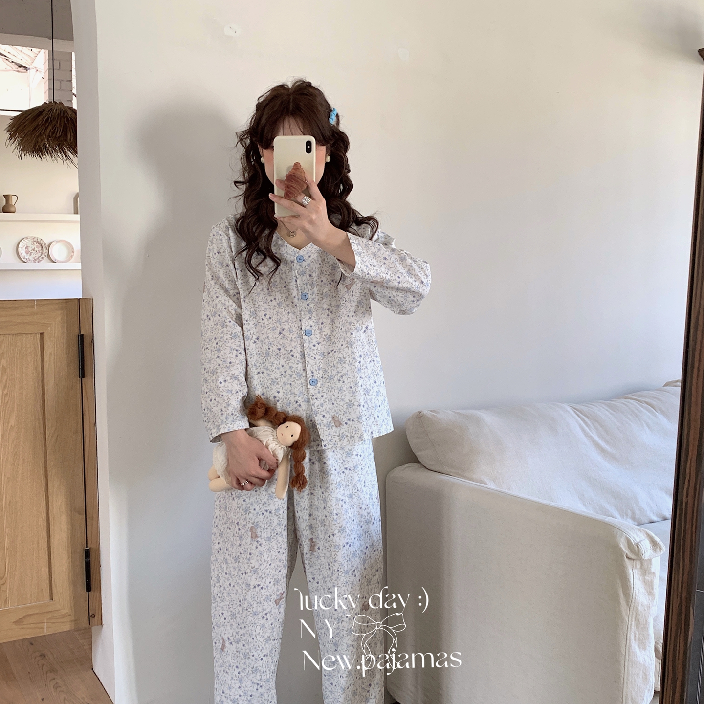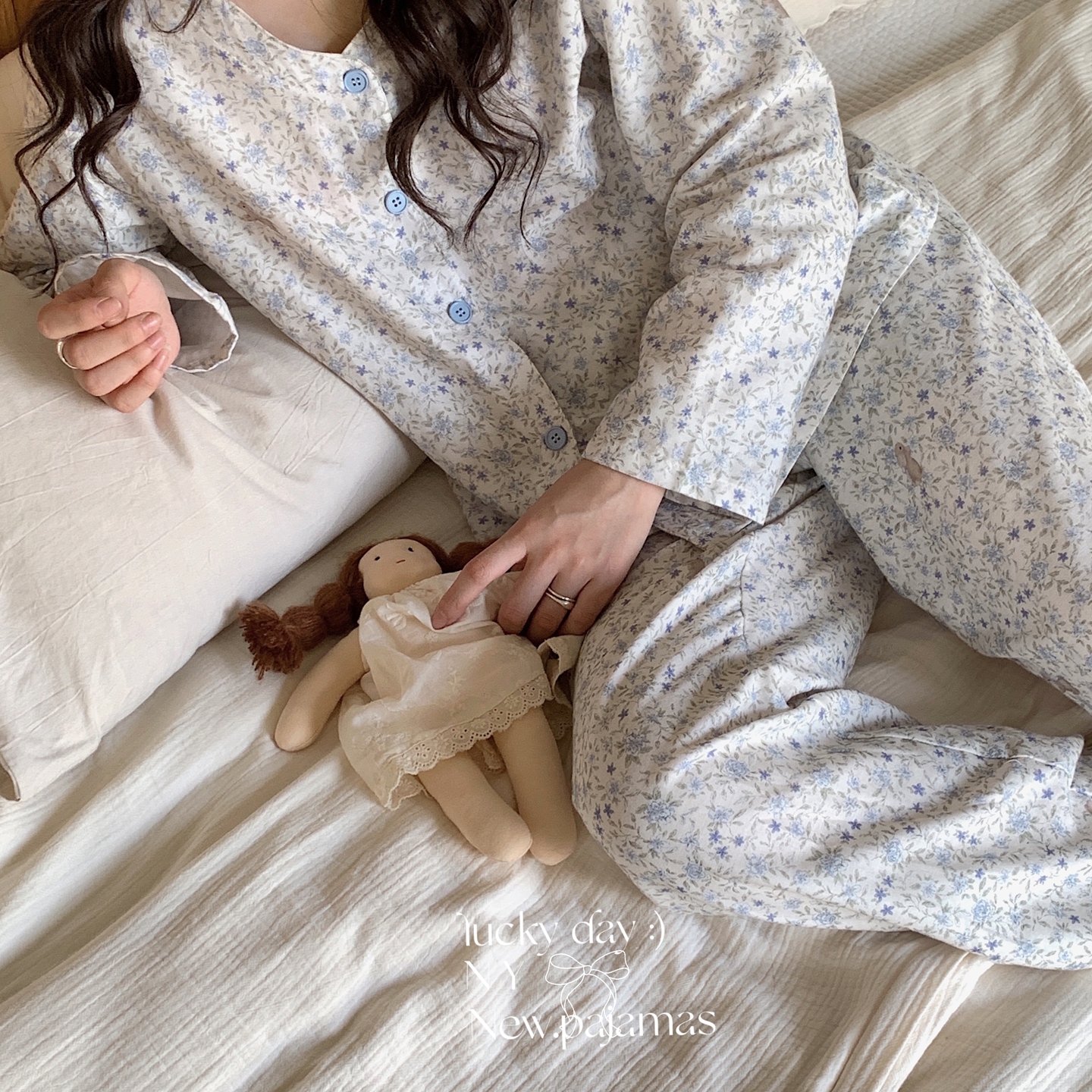 (总)纽约生活 2025新款绉布圆领开扣长袖长裤(会员-5),波比熊,黑碎花猫咪,蝴蝶结粉熊,花花狗,蓝碎花,塞纳花房