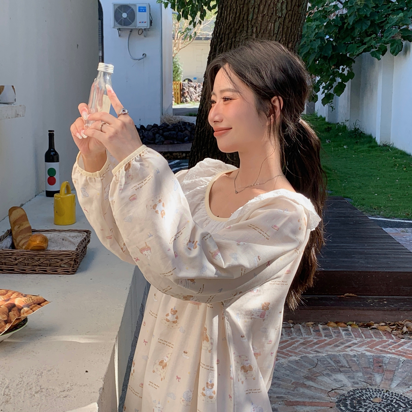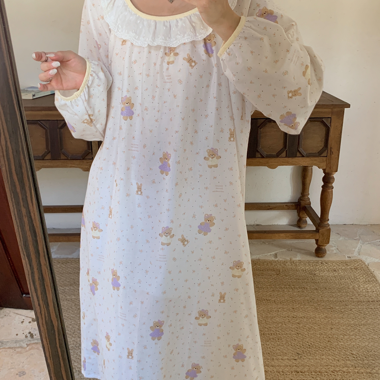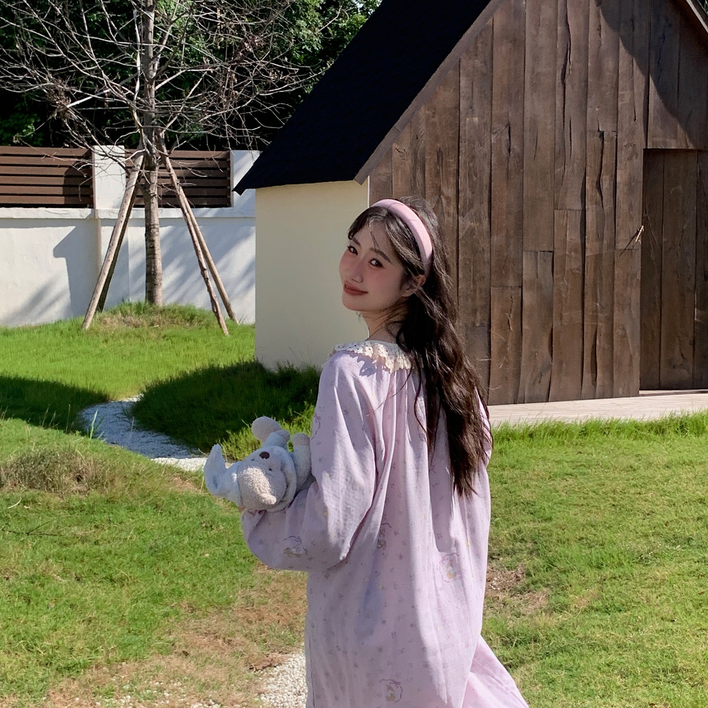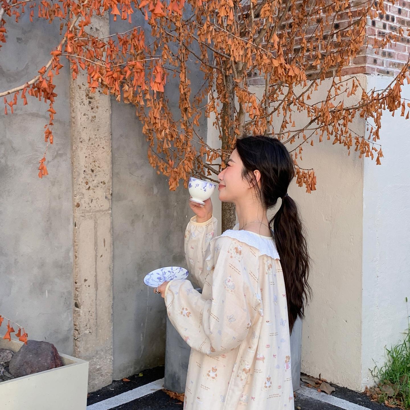 (总)纽约生活 2025新款绉布圆领开扣长袖长裤(会员-5),波比熊,黑碎花猫咪,蝴蝶结粉熊,花花狗,蓝碎花,塞纳花房