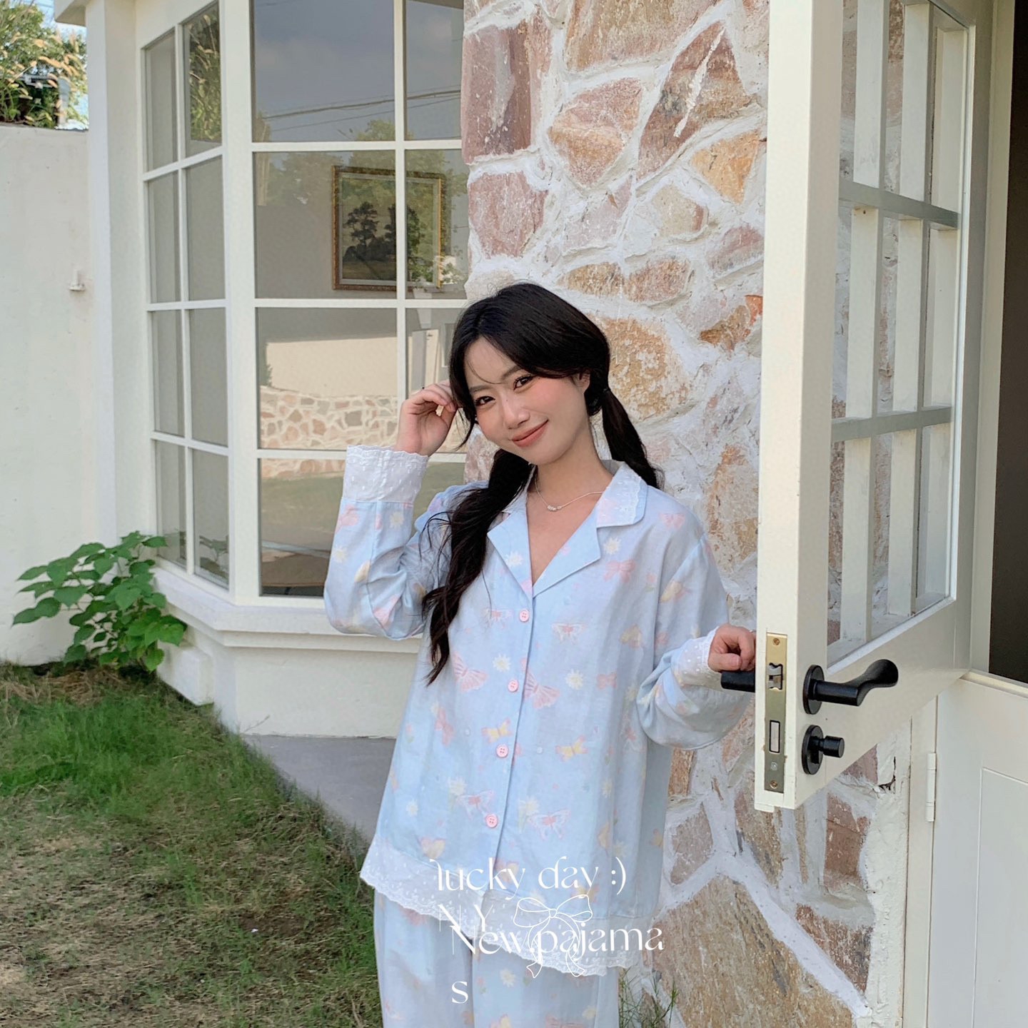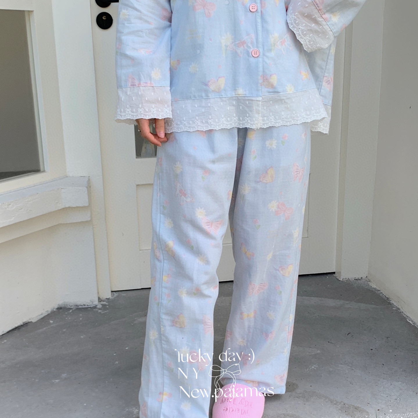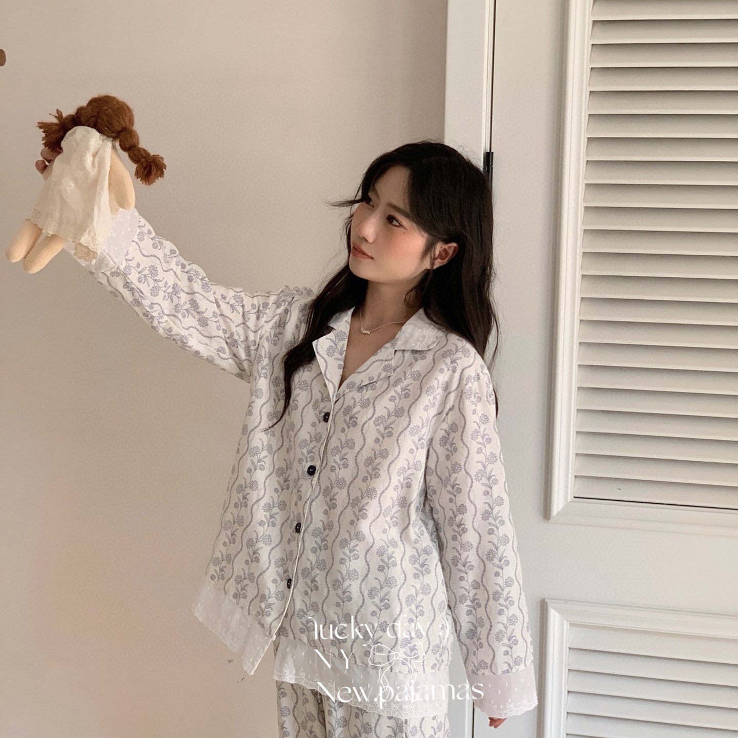 (总)纽约生活 2025新款绉布圆领开扣长袖长裤(会员-5),波比熊,黑碎花猫咪,蝴蝶结粉熊,花花狗,蓝碎花,塞纳花房