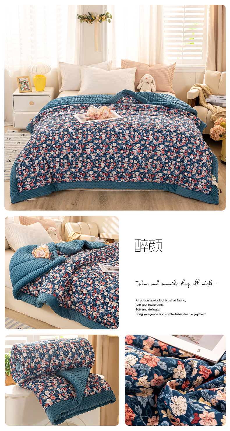 • 91家纺网 家纺一手货源 找家纺 锦鹭被业 2025新款AB版舒适全棉纯棉豆豆绒被被子被芯 醉颜