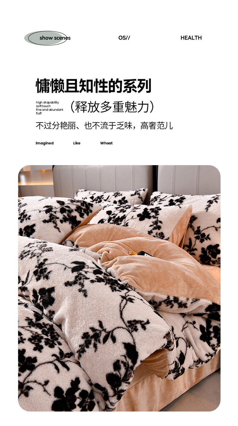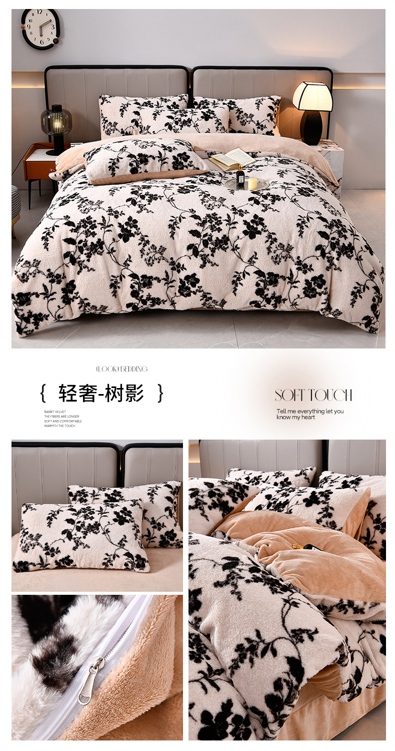 商品名称:梦之星 2025新款加厚8.5斤轻奢兔毛绒皮草绒牛奶绒四件套系列 轻奢-树影