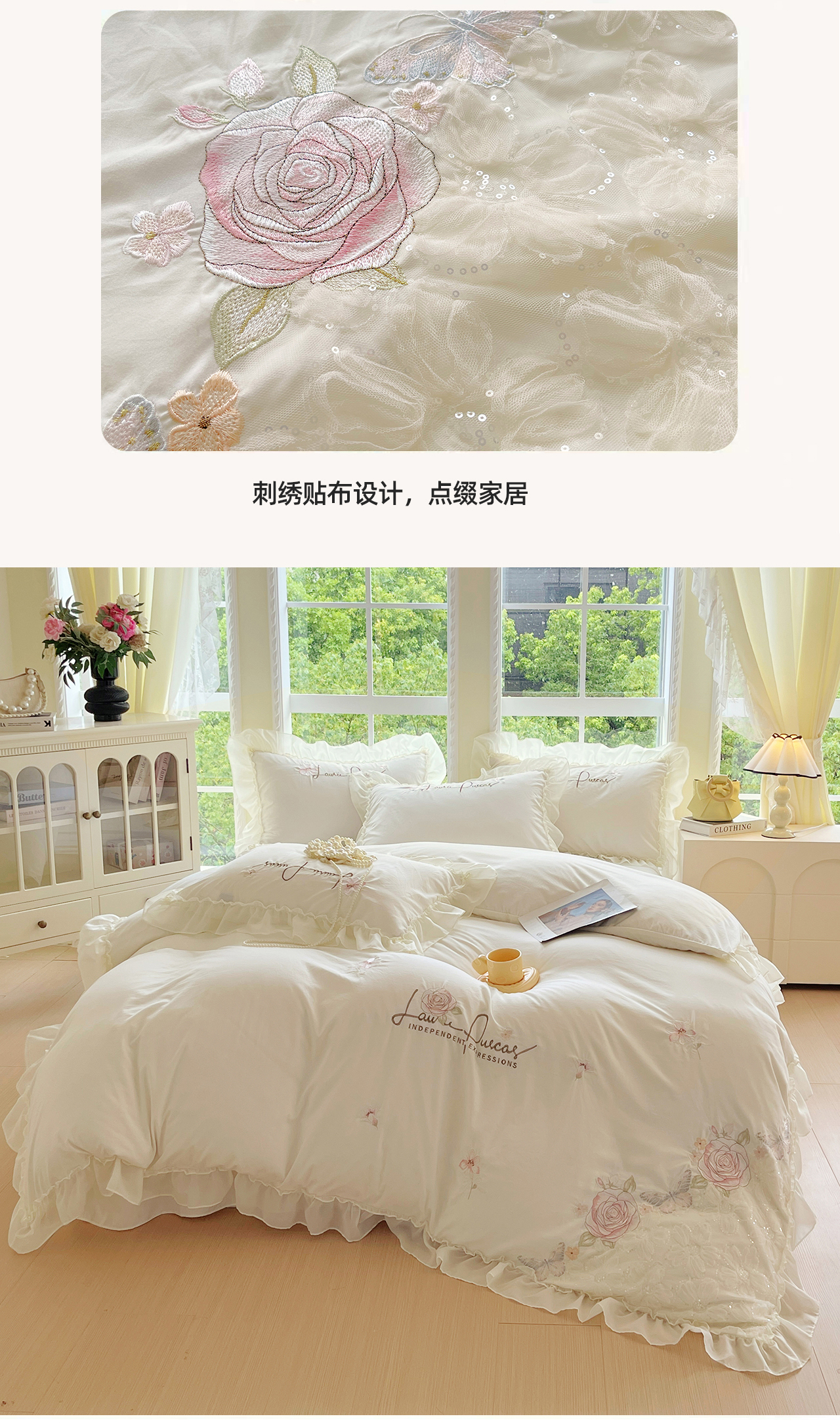 当前位置: 91家纺网 > 商品网购 > 床品套件 > 四件套 > 其它四件套 > 大麦乐田 2025新款公主风花边糯小棉刺绣贴布绣四件套 美丽邂逅-嫩紫
