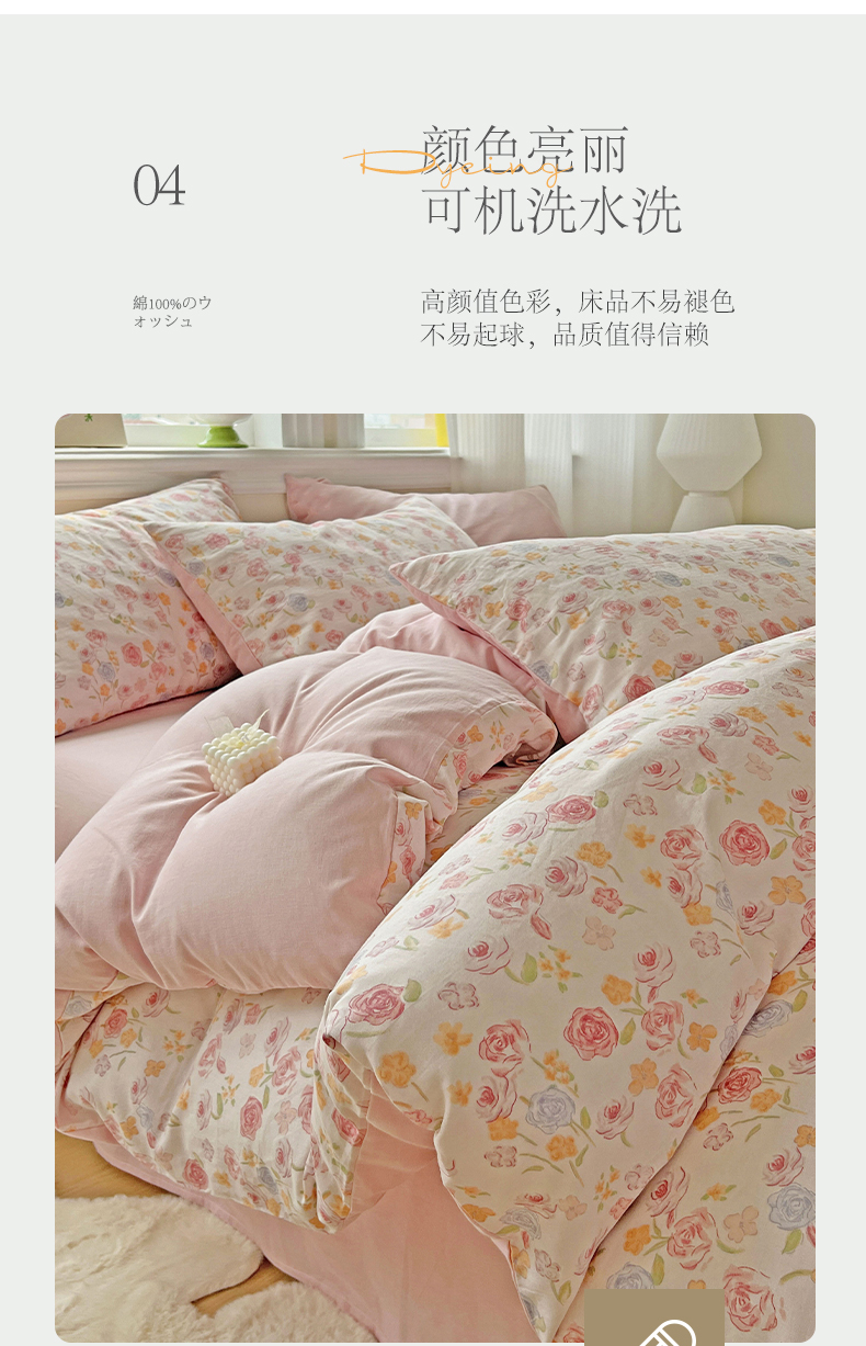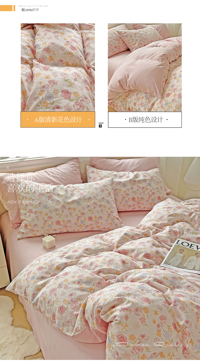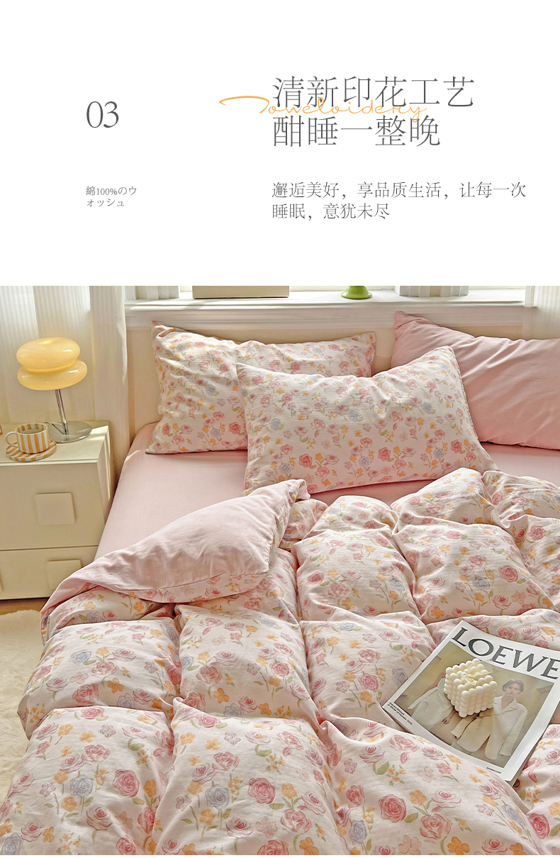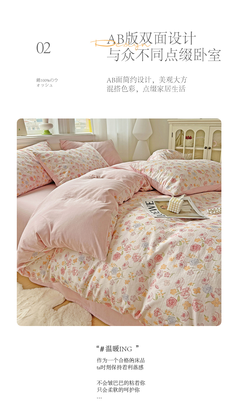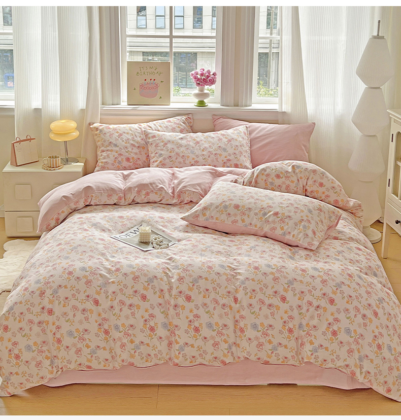 商品名称:小懒猪 2025新款全棉有氧有氧双层纱清新印花四件套 玫瑰花语