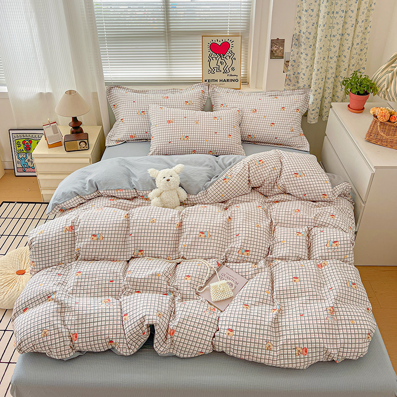 (总)梦纤绒 2026春夏新款全棉纯棉印花学生宿舍三件套,北欧简格,格序,棉织格语,星空格,云朵蓝结,云柔格纹