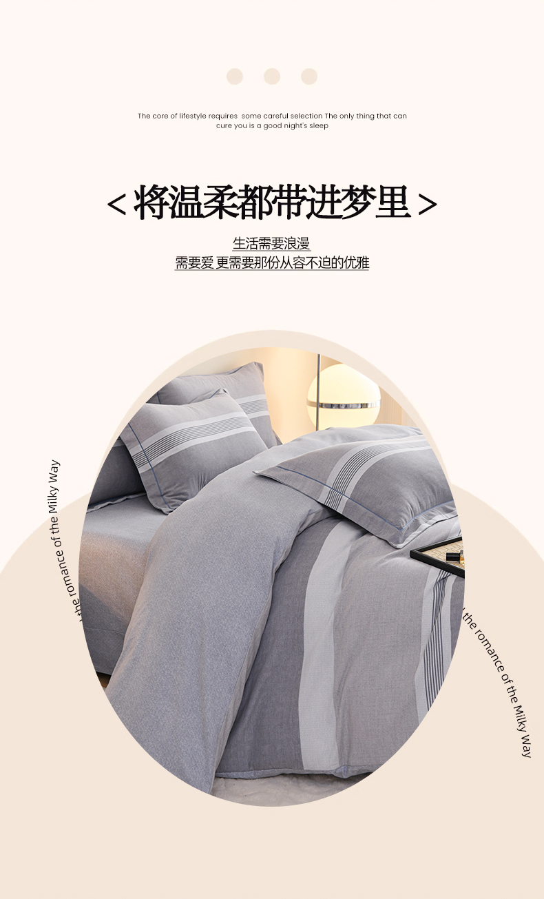 商品名称:铭浩家纺 2025新款全棉纯棉数码印花四件套 南烟-灰