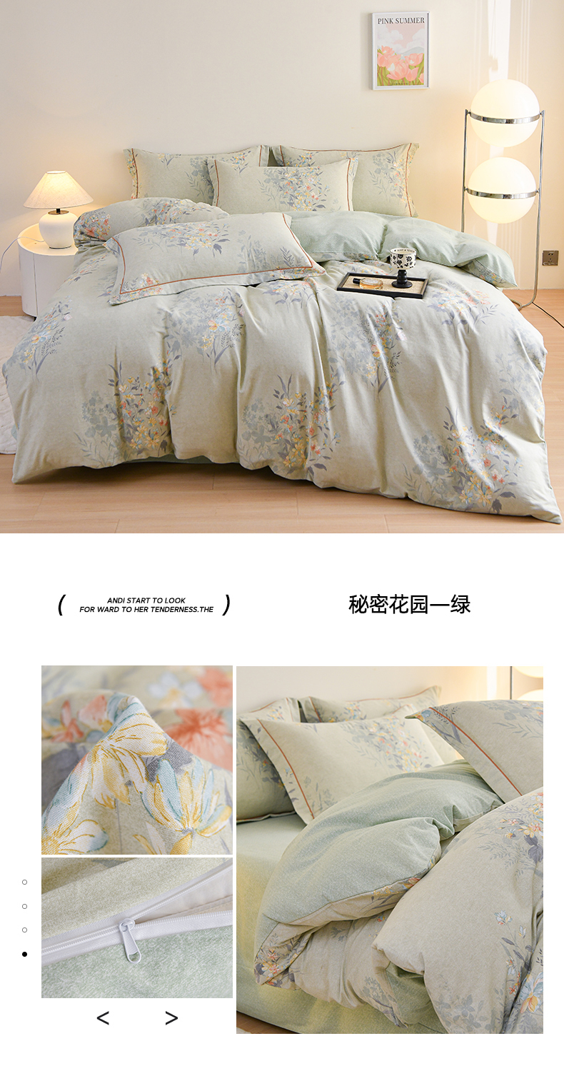 (总)铭浩家纺 2025新款全棉纯棉数码印花四件套,秘密花园-绿,南烟-灰,诺卡-蓝,趣味熊-咖,盛夏-绿,盛夏-紫,舒雅,贴布小熊-绿,西雅图-蓝,颜玉-紫