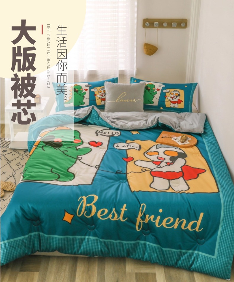 (总)十九色 2022新款夹棉豆豆被,动物世界,开心乐园,米奇,小公主,小恐龙,小苹果,小小交通队,游乐场,彩虹小马,草莓,滑板,糖果熊