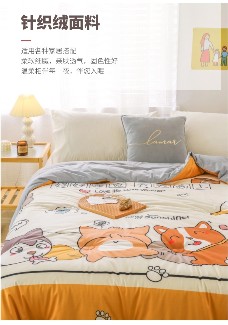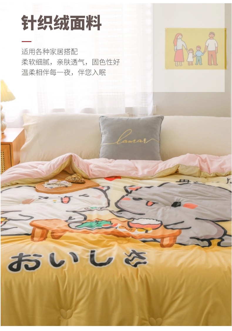 商品名称:(总)十九色 2025新款数码印花大版针织绒春秋冬被卡通被子被芯