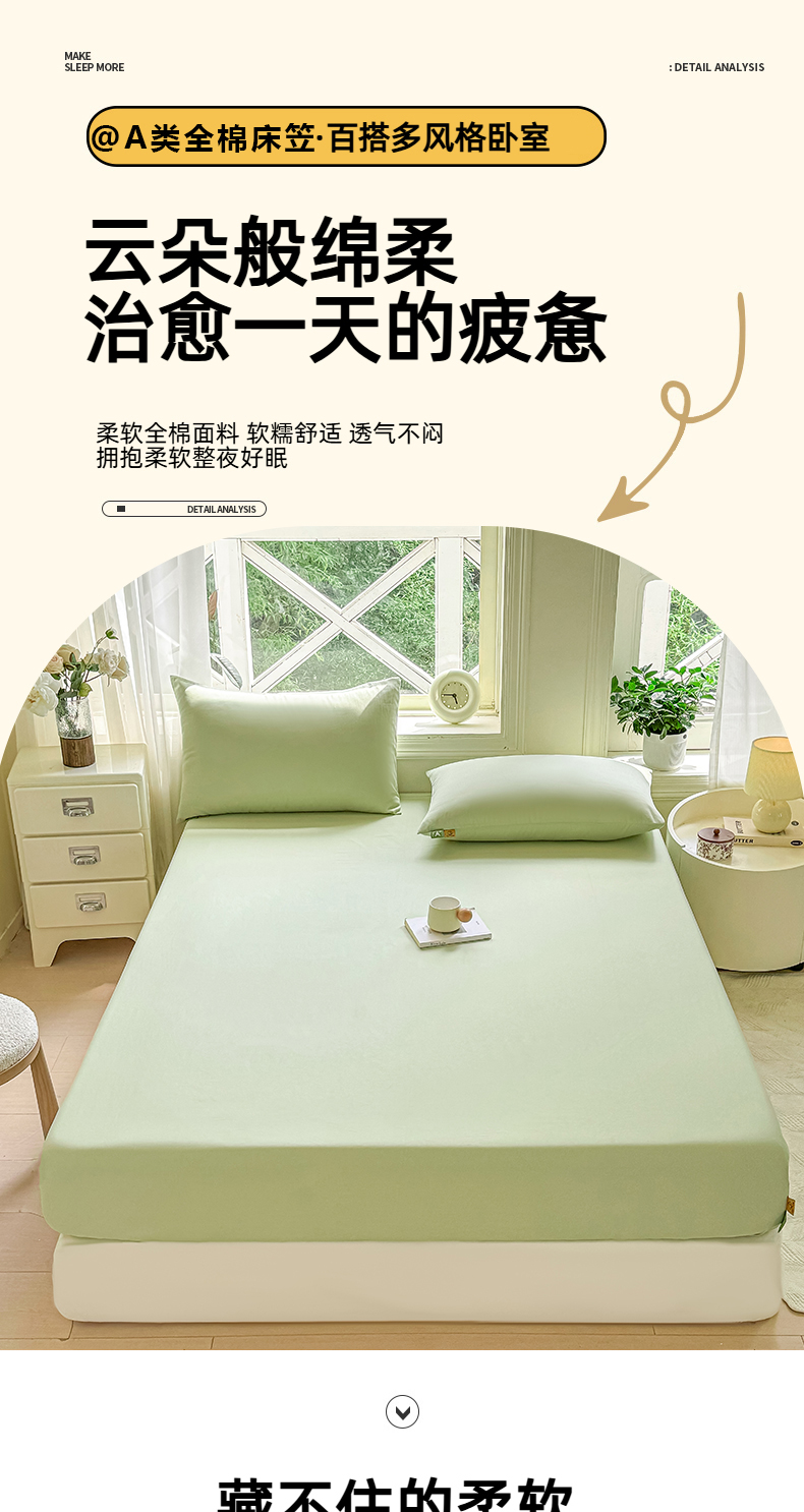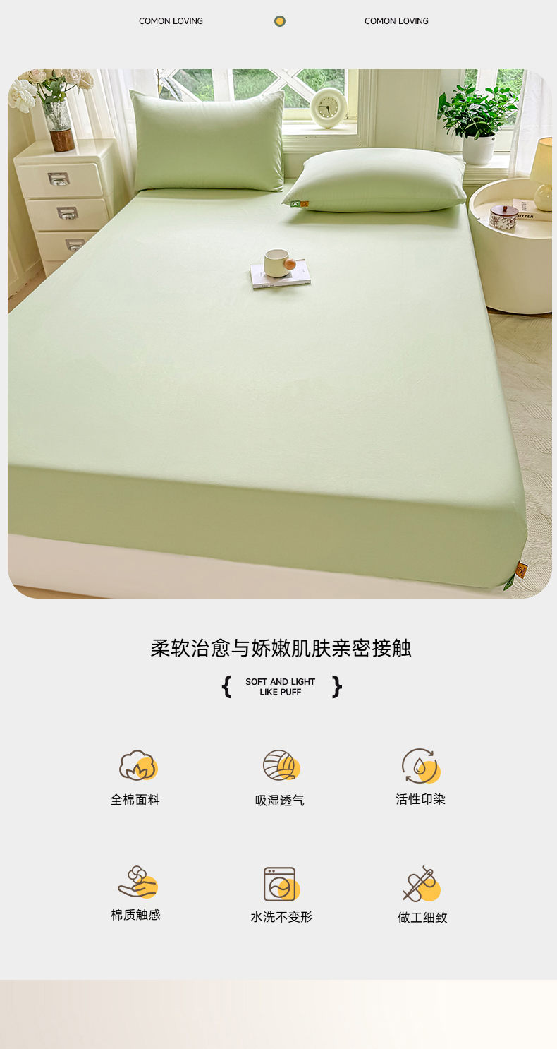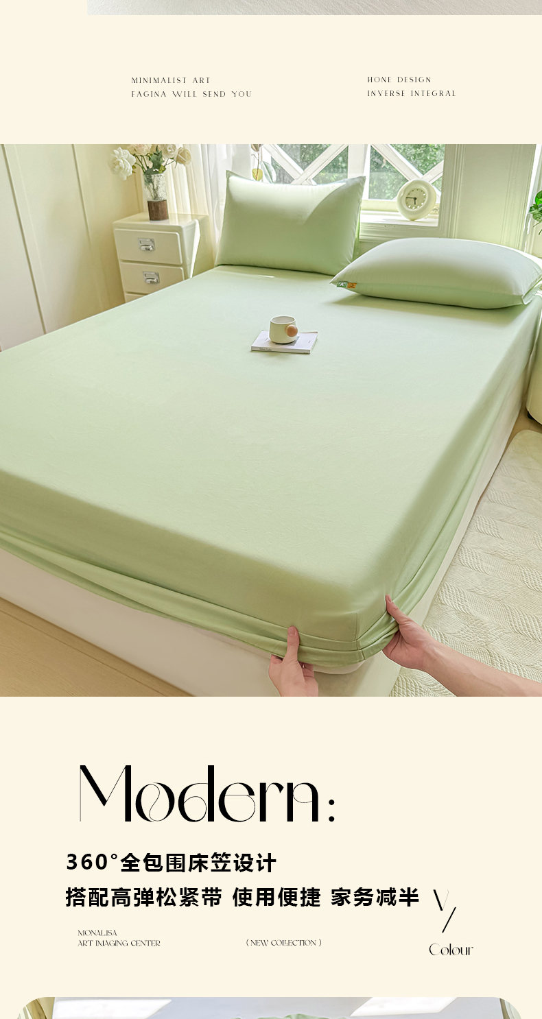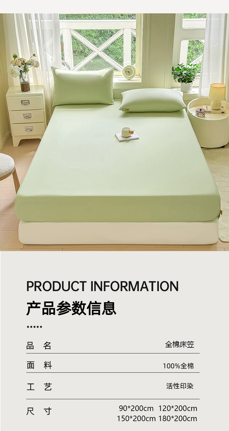 • 91家纺网 家纺一手货源 找家纺 凡客家居 2025新款全棉纯色简约床笠系列 嫩芽绿