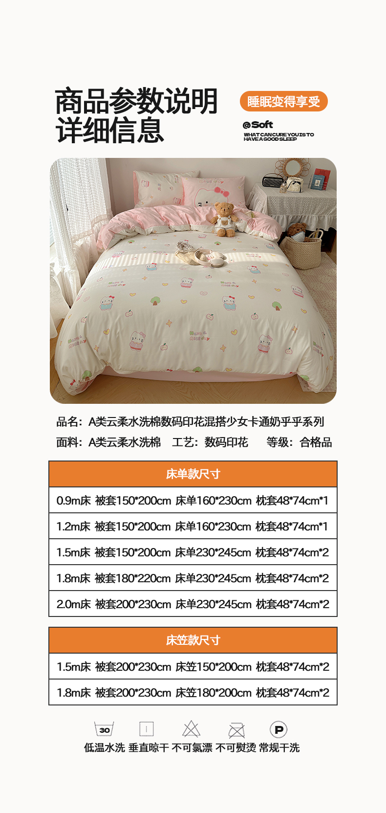当前位置: 91家纺网 > 商品网购 > 床品套件 > 四件套 > 水洗棉四件套 > 桃心家居 2025新款A类亲肤舒适软糯云柔水洗棉数码印花混搭四件套-少女卡通奶乎乎 云柔水洗棉-奶咖心愿猫