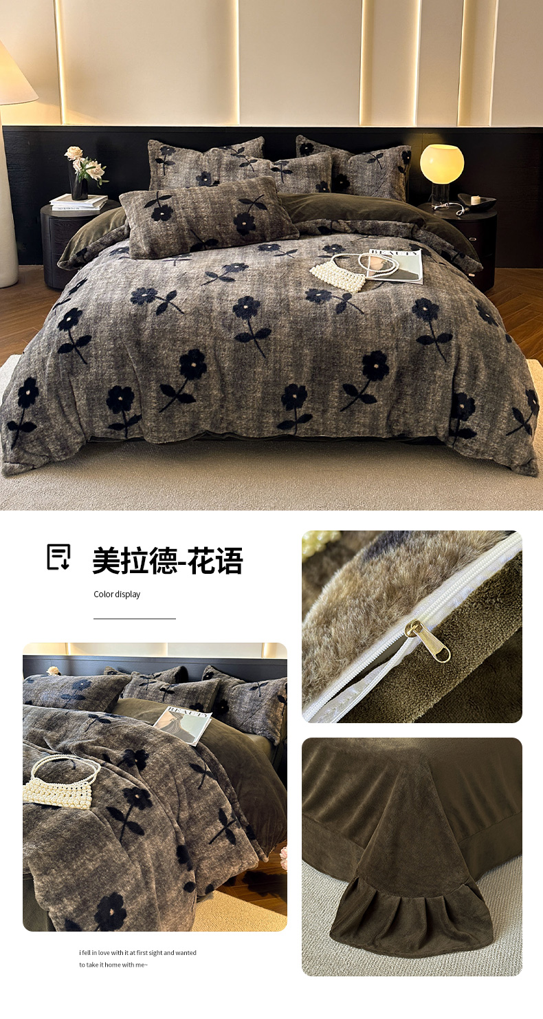 当前位置: 91家纺网 > 商品网购 > 床品套件 > 四件套 > 牛奶绒四件套 > 金阳光家纺 2025新款A类高克重兔毛绒保暖印花牛奶绒四件套 美拉德系列 美拉德-简爱