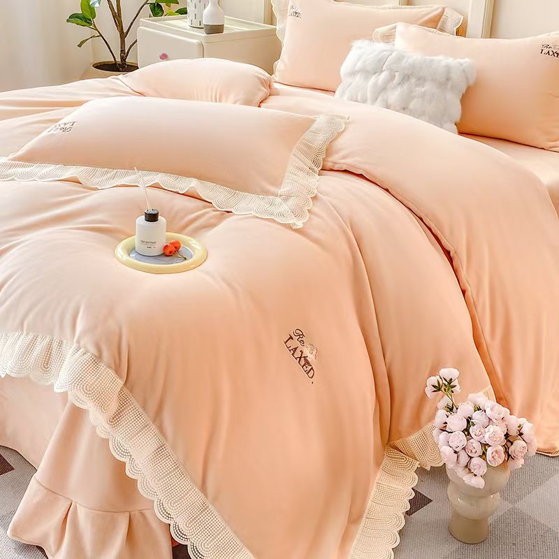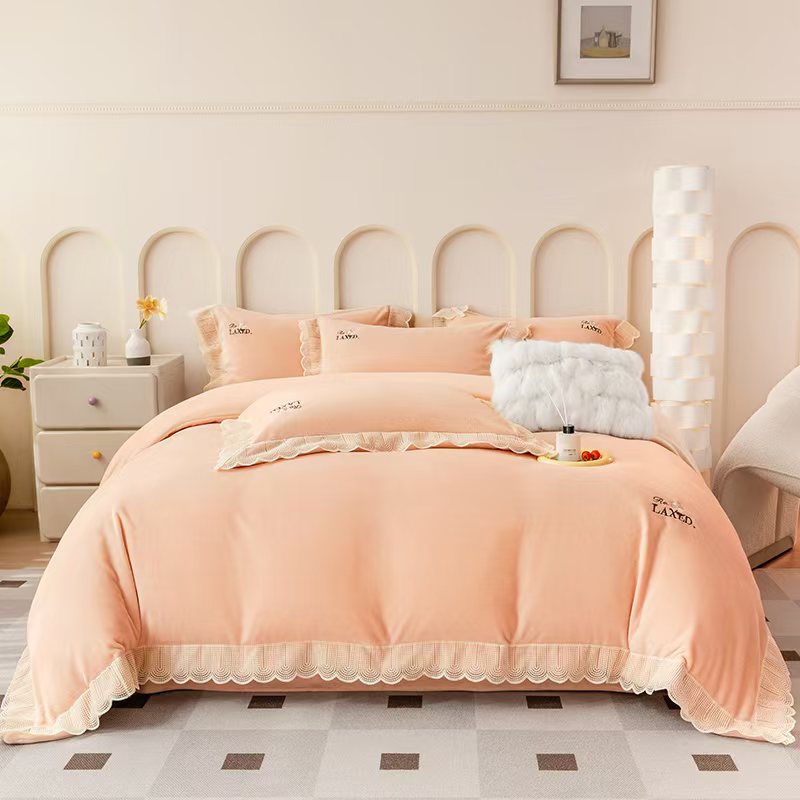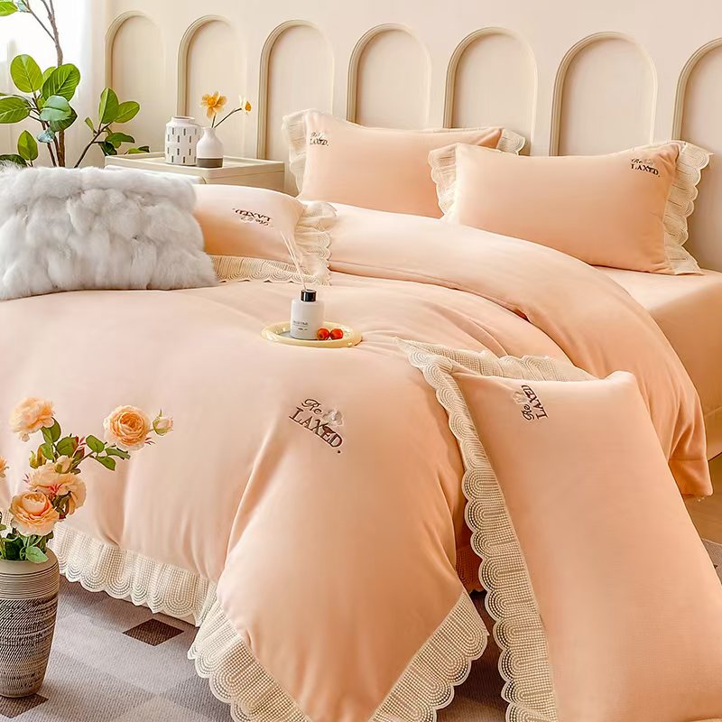 (总)席之家 2025新款公主风蕾丝花边刺绣牛奶绒四件套,少女风-卡其玉,少女风-奶咖,少女风-青柠绿,少女风-少女粉