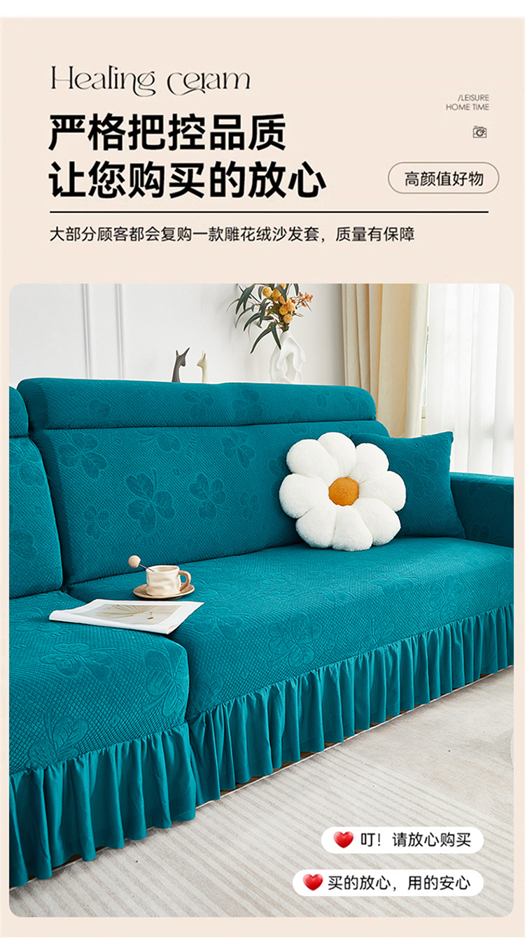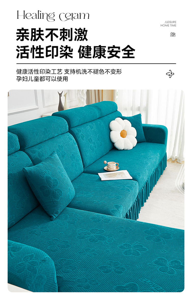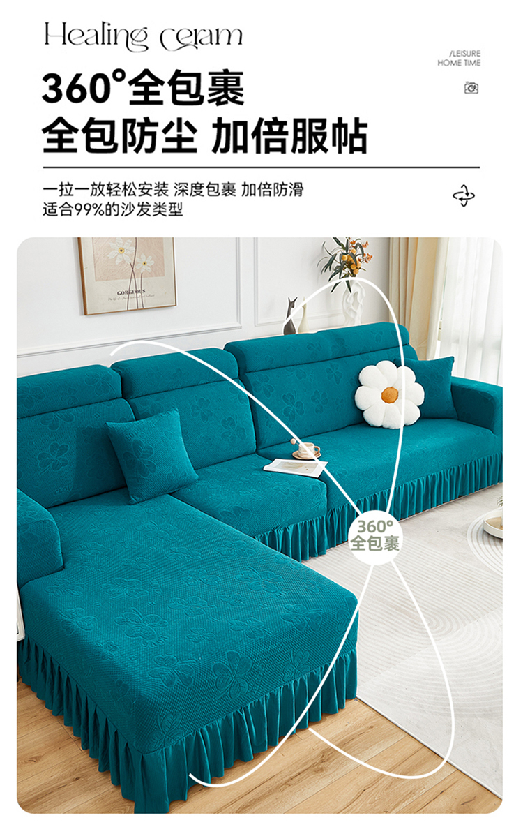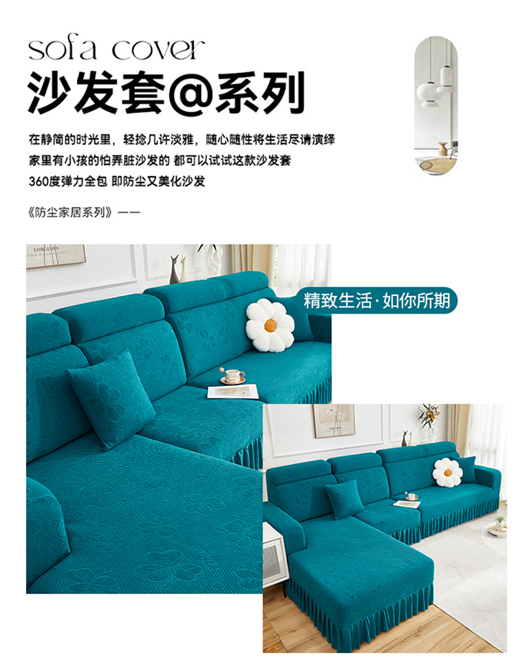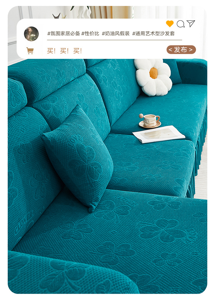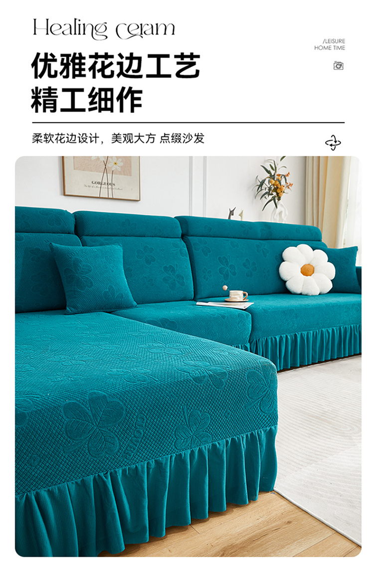 当前位置: 91家纺网 > 商品网购 > 居家布艺 > 坐垫/椅垫/沙发垫 > 沙发垫 > 千彤沙发垫 2025新款防滑防尘优雅百褶裙边全包款沙发笠沙发套罩--三叶草系列 孔雀蓝