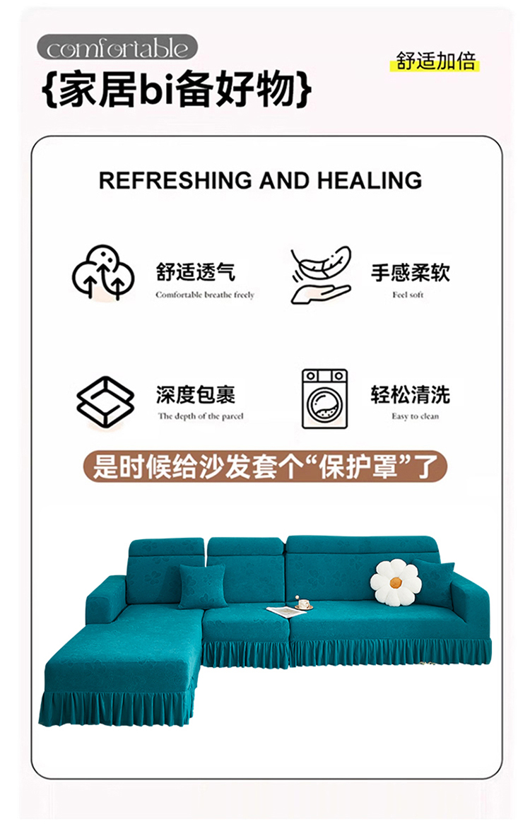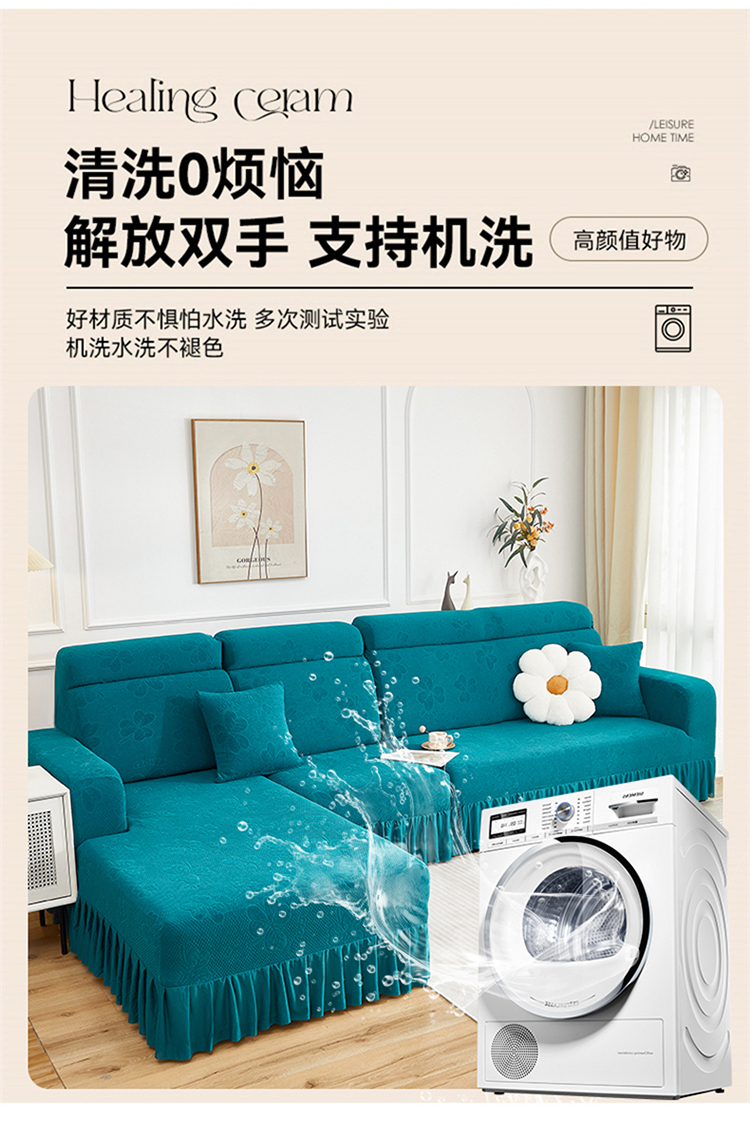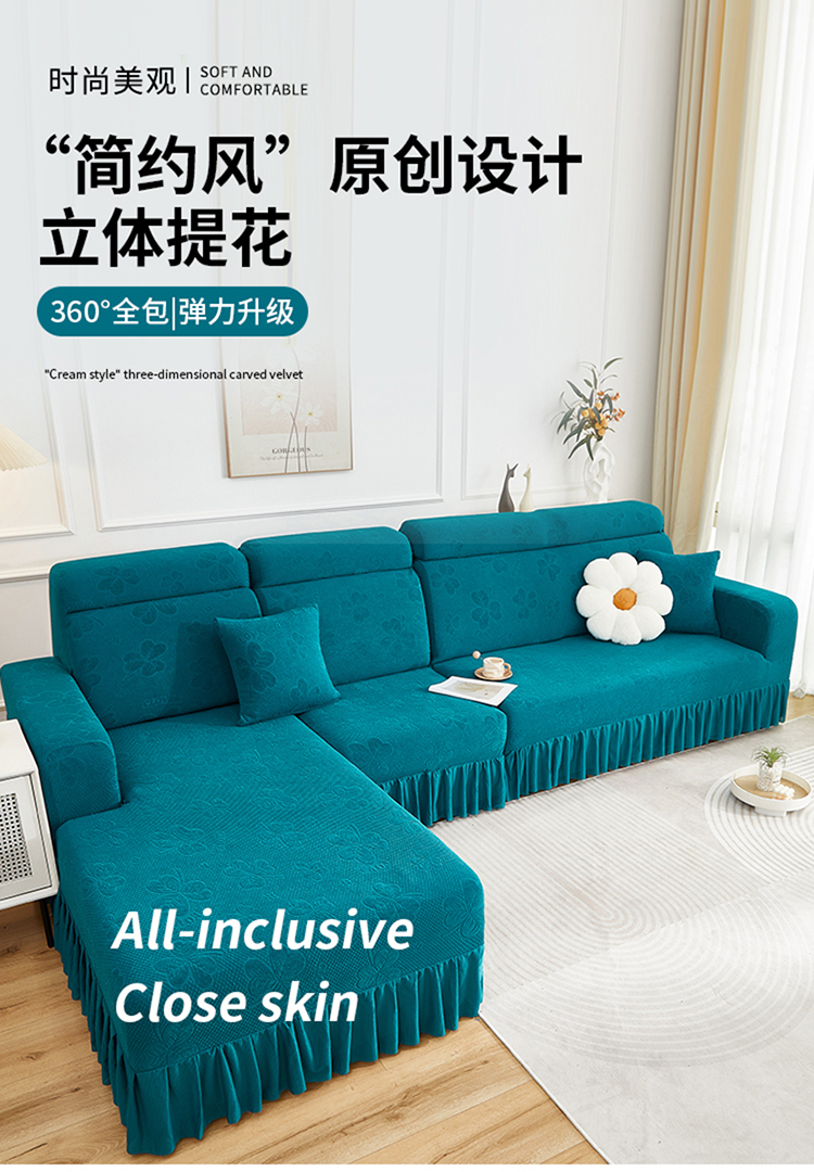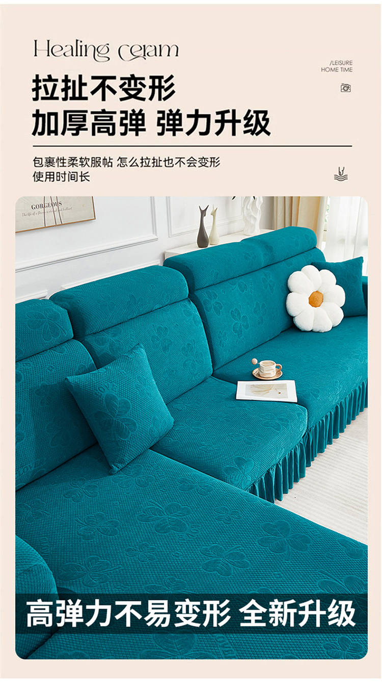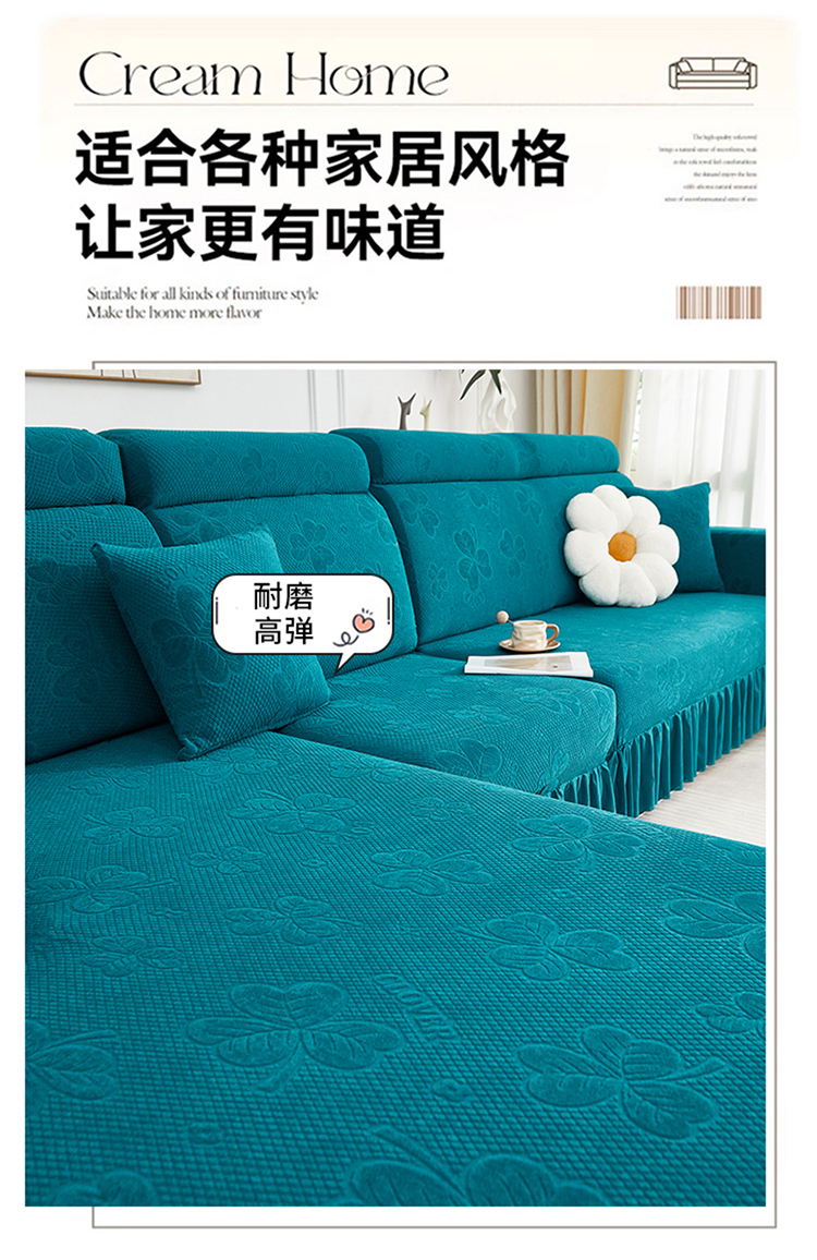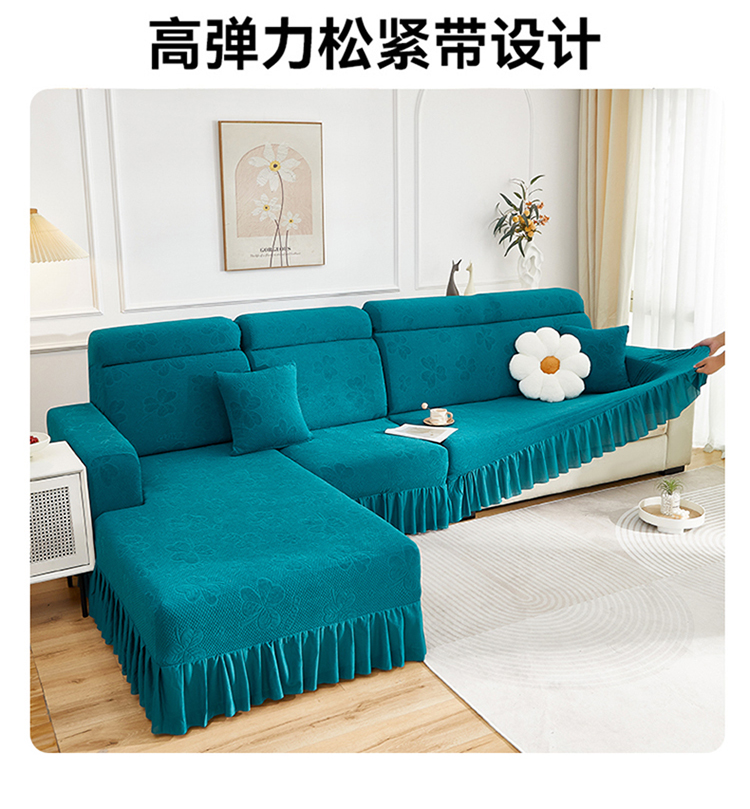 当前位置: 91家纺网 > 商品网购 > 居家布艺 > 坐垫/椅垫/沙发垫 > 沙发垫 > 千彤沙发垫 2025新款防滑防尘优雅百褶裙边全包款沙发笠沙发套罩--三叶草系列 孔雀蓝