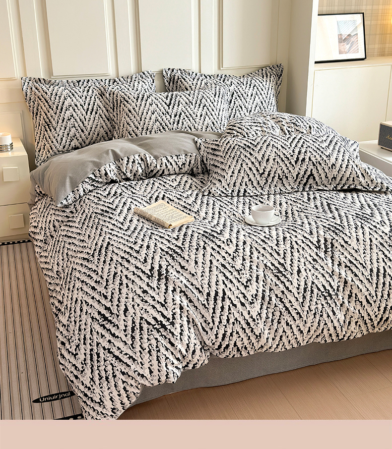 当前位置: 91家纺网 > 商品网购 > 床品套件 > 四件套 > 磨毛活性四件套 > 典曼家纺 2025新款原棉加厚磨毛印花四件套 麦语-灰