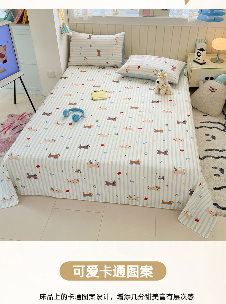 • 91家纺网 家纺一手货源 找家纺 典曼家纺 2025新款40支学生季卡通印花床单单床单床单单件 椰蓝小腊肠