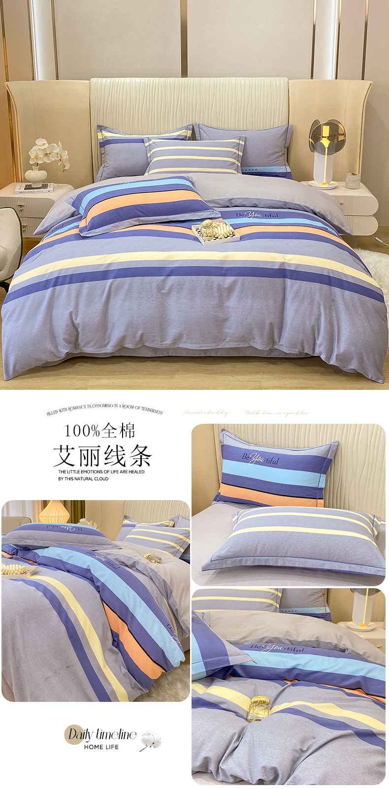 红日子纺织品 2025新款100%全棉纯棉磨毛四件套 快乐微笑
