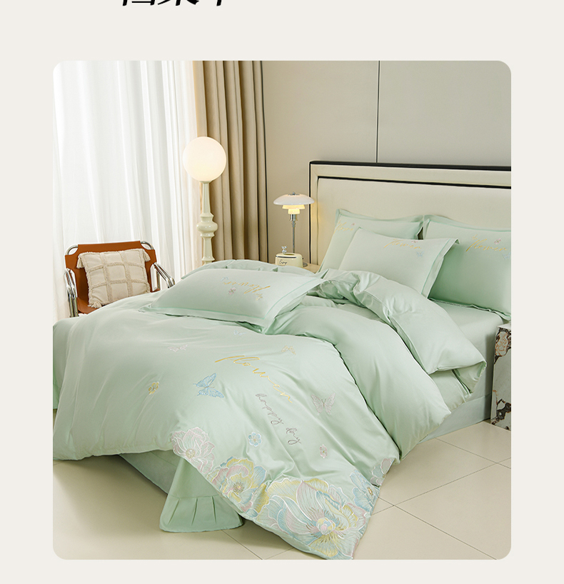(总)绒小宣 2025新款A类牛奶绒刺绣四件套-蝶恋花,木果绿,豆沙色,帝都灰,浅夏紫,晴山蓝,芍药粉,苏打橙,天空兰,浅粉